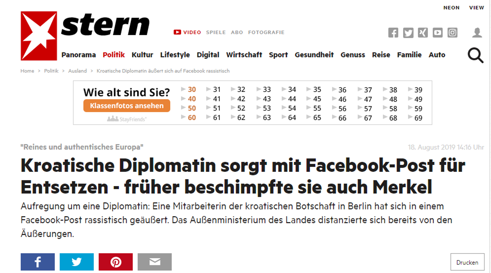 Tjednik Stern u svom tekstu navodi kako cijeli slučaj čini ozbiljnijim činjenica što Hrvatska preuzima predsjedanje Europskom unijom 2020. godine.