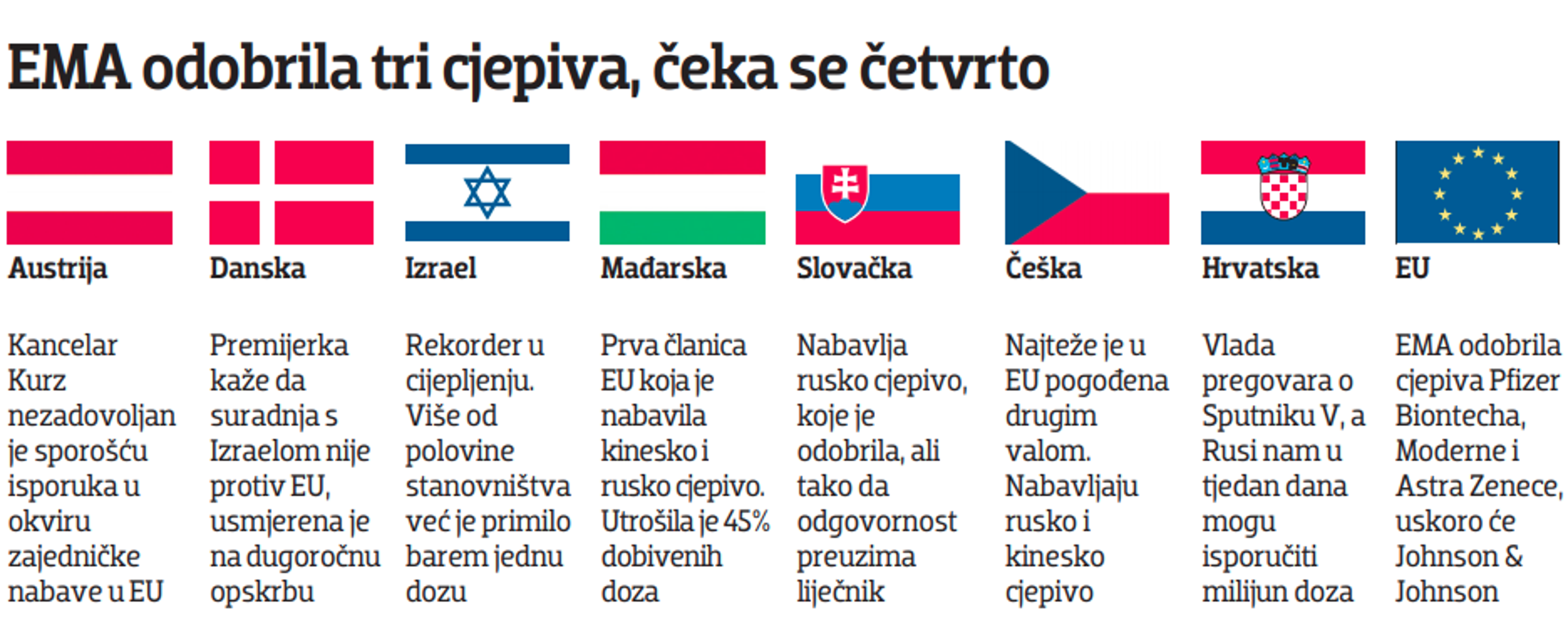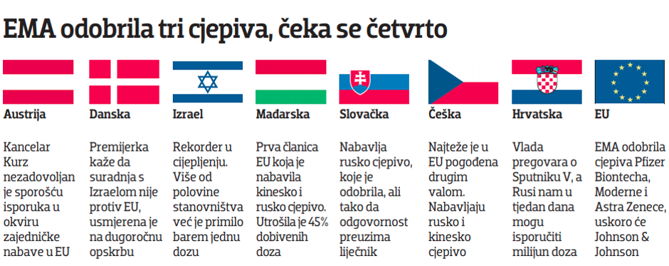 Hrvatska pregovara o distribuciji i registraciji ruskog cjepiva Sputnik V, Austrija i Danska potpisuju sporazum s Izraelom o nabavi cjepiva protiv COVID-19, Slovačka prima prve isporuke ruskog cjepiva, predsjednik Poljske u kontaktu je s predsjednikom Kine oko nabave kineskog cjepiva... Je li koncept zajedničke europske nabave pred kolapsom?
