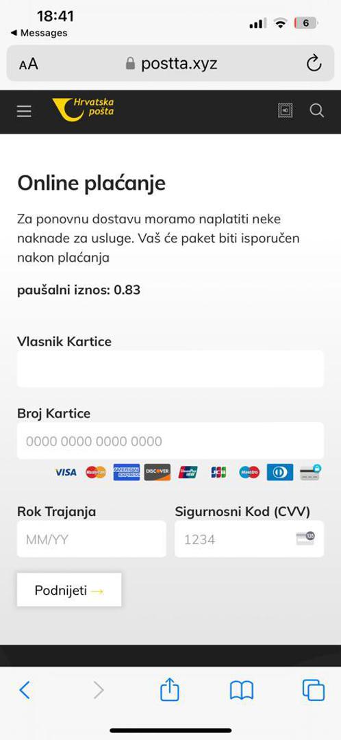 Zapamtite kako je službena domena Hrvatske pošte posta.hr te da vas nitko ne bi smio tražiti da podijelite sve podatke s bankovne kartice.