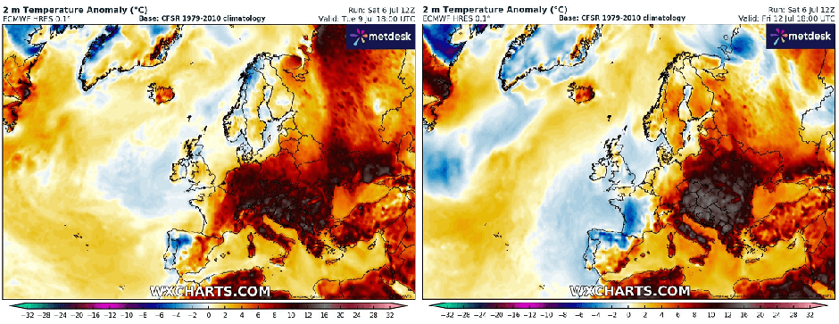 Severe weather Europe početkom tjedna objavio je i kartu koja pokazuje gdje se zadržao ovaj toplinski val, najavljujući kako se nakon visokih temperatura vjerojatno očekuje novo nevrijeme. Toplinski val svoj je vrhunac dočekao u petak, a najviše temperature, i do 43°C, očekuju se upravo na Balkanu i u Italiji.