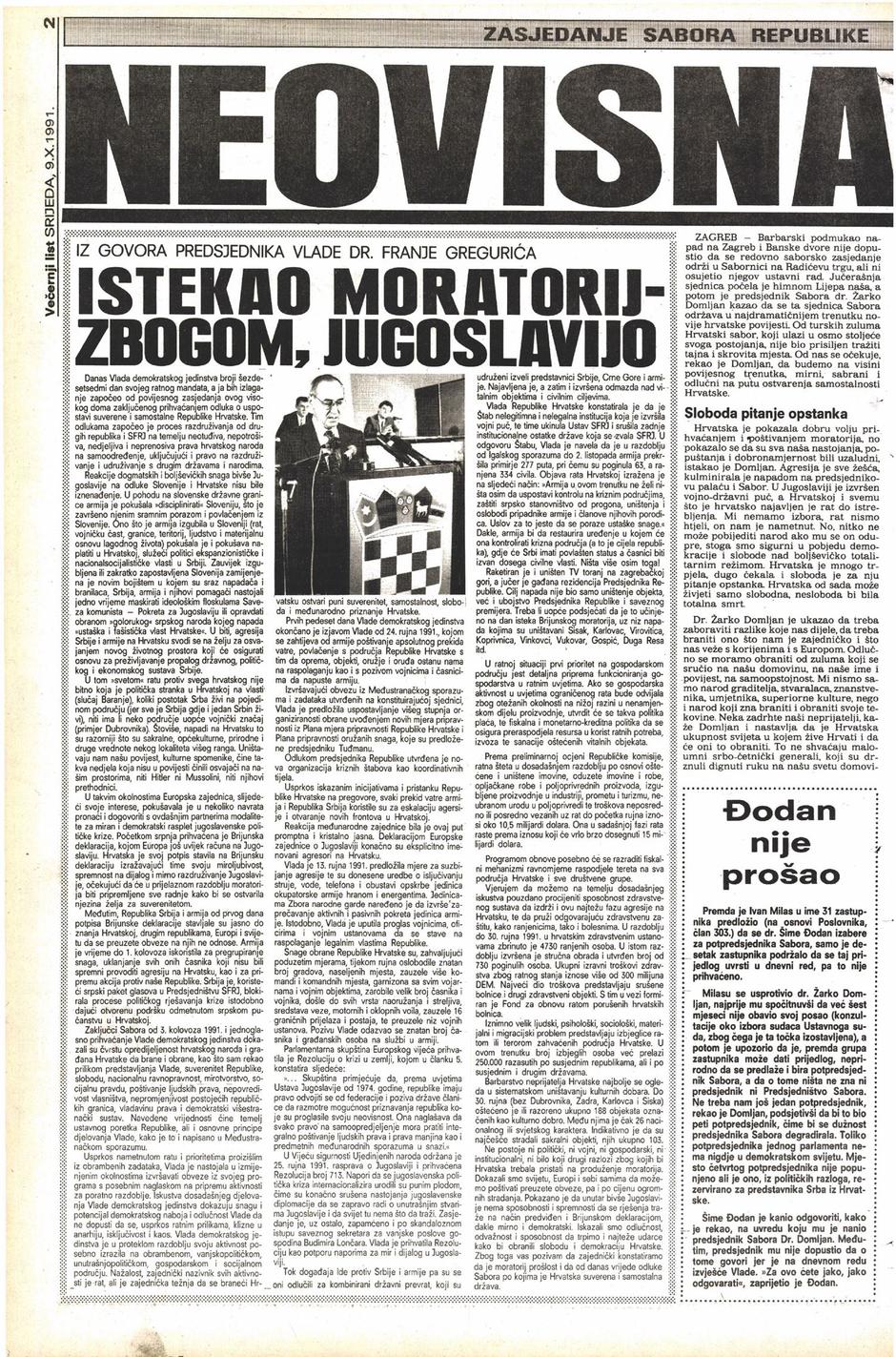 Sabor je na današnji dan 1991. donio povijesnu odluku: 'Istekao moratorij - zbogom Jugoslavijo!'