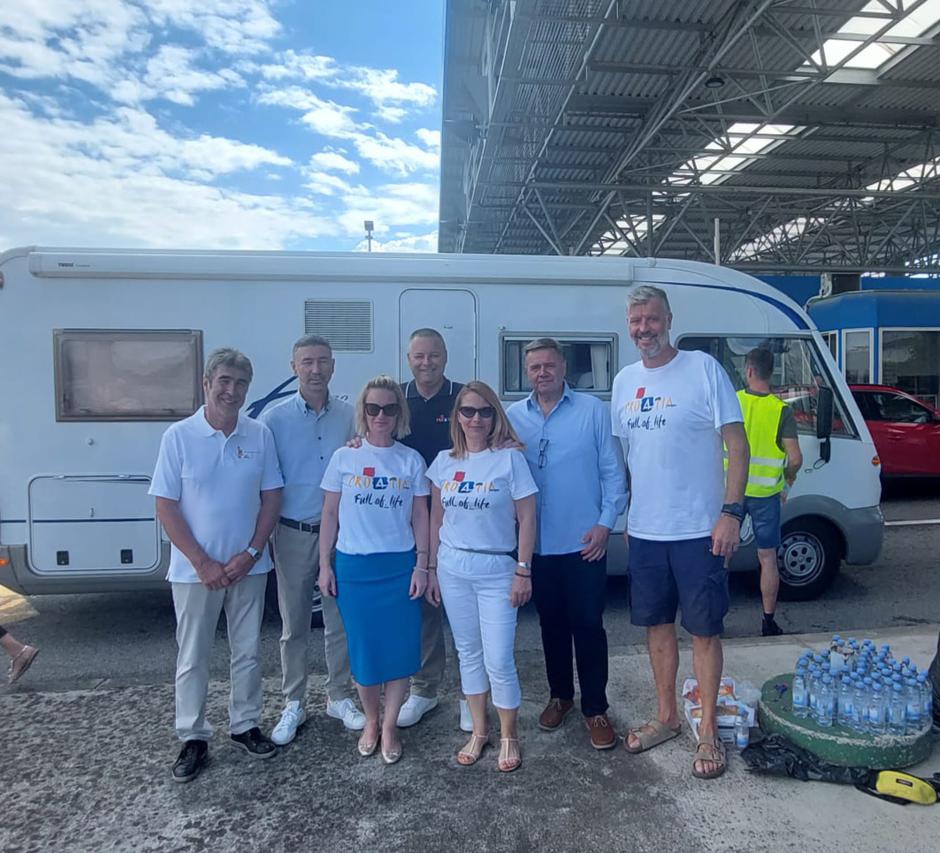 Akciji podjele vode na graničnom prijelazu Plovanija priključio se direktor Hrvatske turističke zajednice Kristjan Staničić, direktor TZ Istarske županije Denis Ivošević, predstavnici turističkih zajednica gradova Umag i Buje te nekoliko djelatnika HTZ-a.