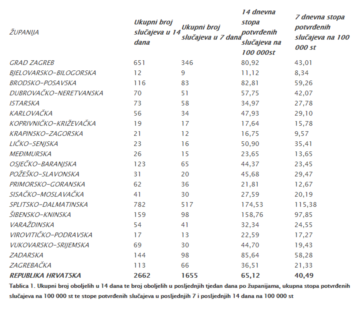 Hrvatski zavod za javno zdravstvo (HZJZ) objavio je na stranicama izvještaj za prethodnih tjedan dana kojeg su obilježile rekordne brojke novooboljelih u Hrvatskoj.