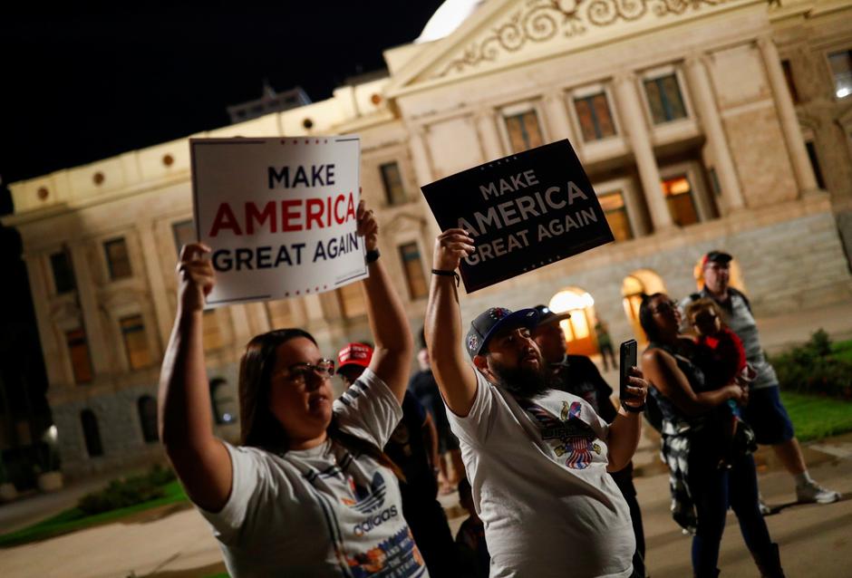 Protestirali su zbog nastavka brojanja glasova u Phoenixu u Arizoni. Naime, Trump je već nekoliko puta naglasio kako smatra da je brojanje dopisnih glasova problematično i okrivio demokrate da mu tim putem žele ukrasti pobjedu.
