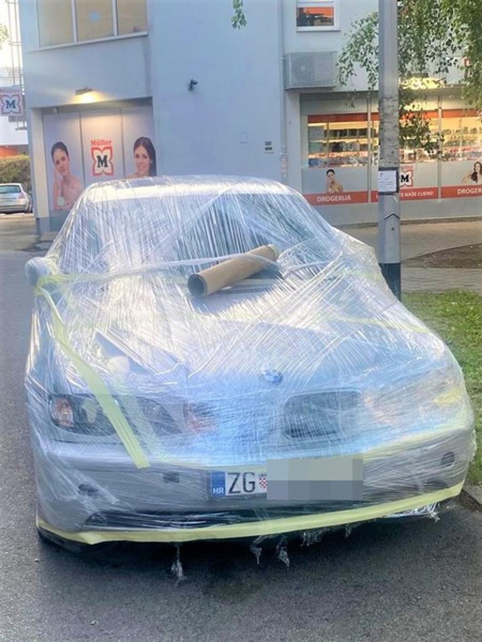 To je očito razljutilo stanara zagrebačkog Stenjevca koji je cijeli automobil omotao folijom pa potom zalijepio trakama, piše Danica.hr.