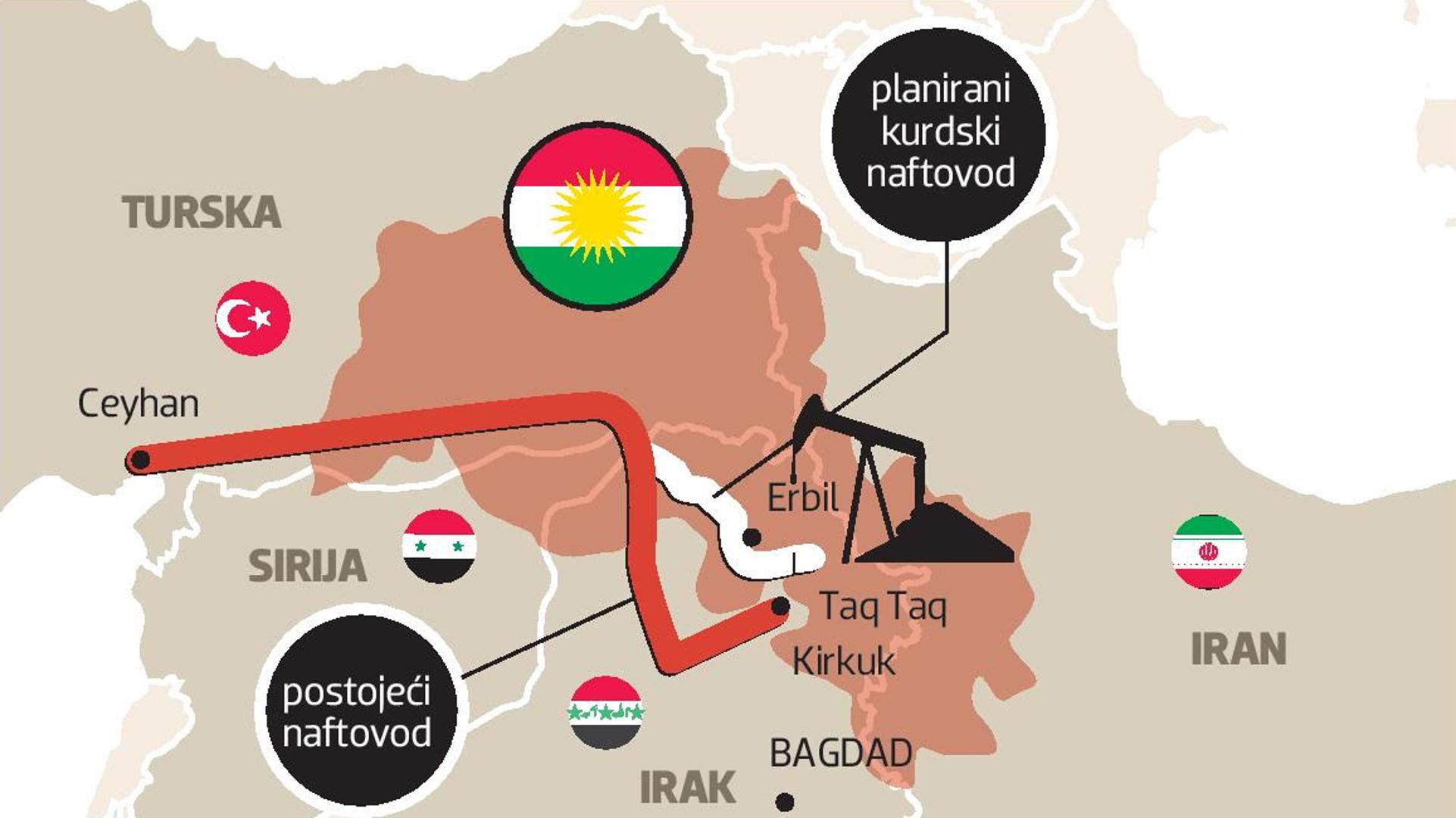 Cjevovod bi trebao biti sagrađen 2019. a izvoz bi trebao početi 2020. Kako i ruske tako i američke naftne kompanije rade na području Kurdistana, Weatherford, Exxon i Chevron. Također, četiri zapadne naftne kompanije blizu su potpisivanja naftnog ugovora s iračkom vladom koji će im omogućiti povratak u tu zemlju prvi put nakon 36 godina. Exxon Mobile, British Petroleum, Royal Dutch Shell i Total surađivali su s Iraq Petroleum Co. prije nego što je Sadam Husein nacionalizirao naftnu industriju. Ako svijet ne reagira brzo i ne zaustavi zasad politički sukob između Bagdada i Erbila, prerast će u vjerski i etnički poput onog u Siriji i neće ga biti lako zaustaviti.