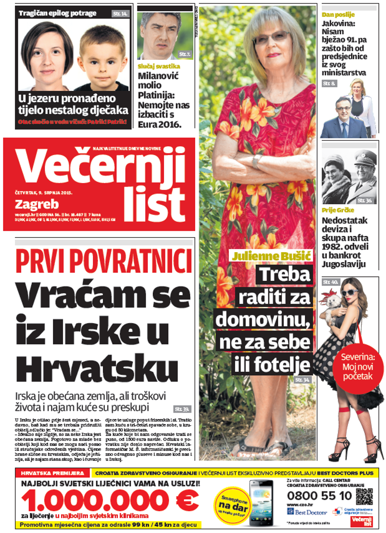 >>U današnjem Večernjem među ostalim donosimo i ove teme: