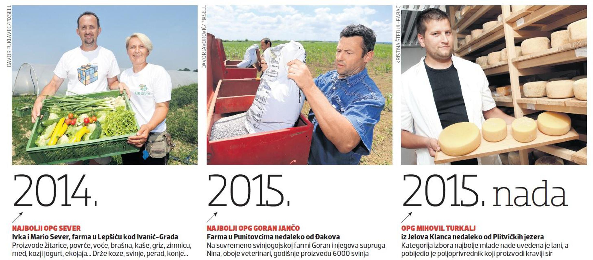 Stručni žiri projekta, koji su 2014. godine radi promoviranja poljoprivredne proizvodnje i života na selu osmislili i pokrenuli Večernji list i Ministarstvo poljoprivrede, izabrao je po jedan OPG iz svake županije te iz Grada Zagreba koji su ušli u završnicu izbora. Priče o vrijednim ljudima sa sela objavljivat ćemo u Večernjem listu, na portalu vecernji.hr i na portalu agrobiz.hr od 11. srpnja do 12. kolovoza, od ponedjeljka do petka.