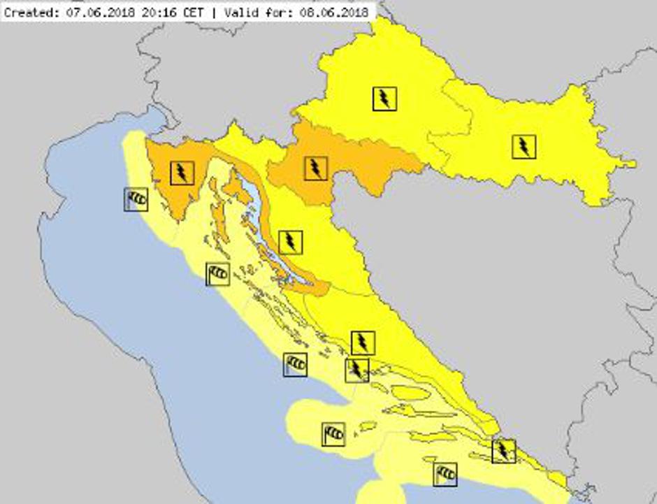 Za ostatak Hrvatske izdan je žuti meteolarm.