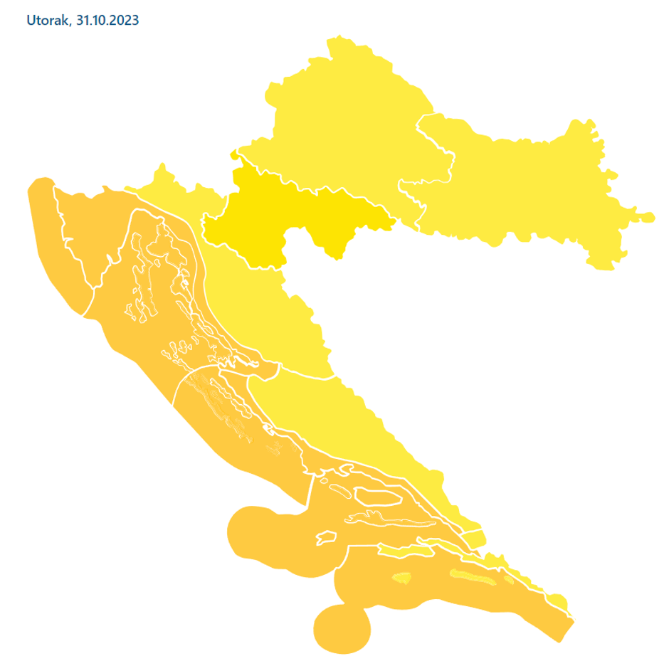 Za ostatak Hrvatske, odnosno dubrovačku, kninsku, gospićku, karlovačku, zagrebačku i osječku regiju, izdano je žuto upozorenje. DHMZ, naime, upozorava na vjetar i grmljavinsko nevrijeme.