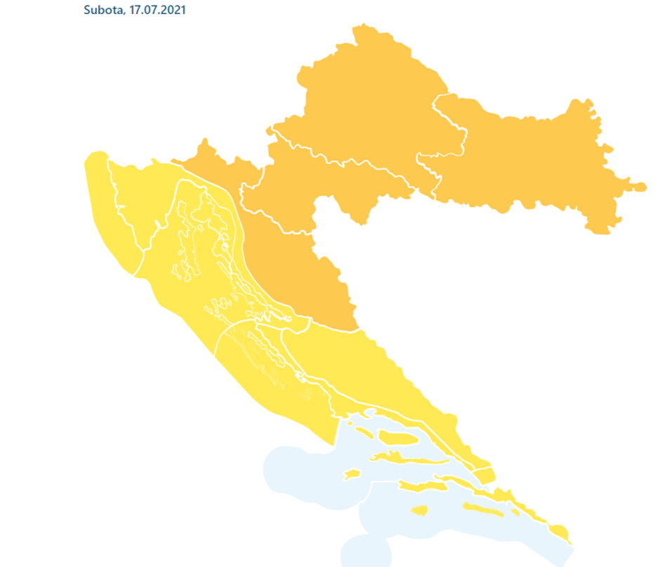 Slično upozorenje dolazi i iz Hrvatskih voda. Navode da su moguće obilne oborine tijekom ovog vikenda, 17. i 18. srpnja, a naročito tijekom subote i to na području Gorskog kotara, Like te ostalog dijela kontinentalne Hrvatske.  Postoji mogućnost bujičnih i urbanih poplava. Uz nagli porast vodostaja, neki vodotoci bi mogli dosegnuti mjere obrane od poplava (npr. Bregana i Sutla).