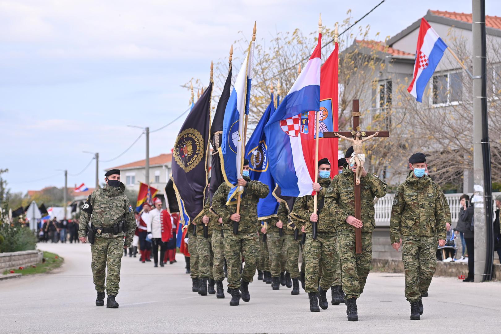 18.11.2021., Skabrnja - Kolonom sjecanja i polaganjem vijenaca na spomen obiljezje masovne grobnice obiljezava se 30. godisnjica stradavanja branitelja i civila.