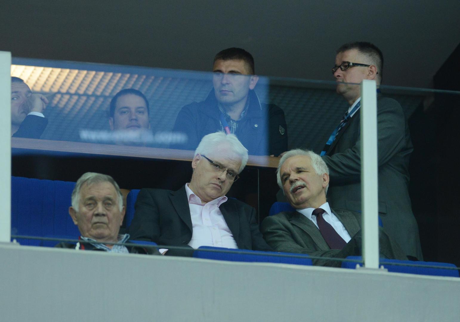 Predsjednik Josipović je utakmicu pratio iz lože u duštvu Zorana Gobca, dok je Kolinda Grabar Kitarović sjedila na tribinama među publikom.