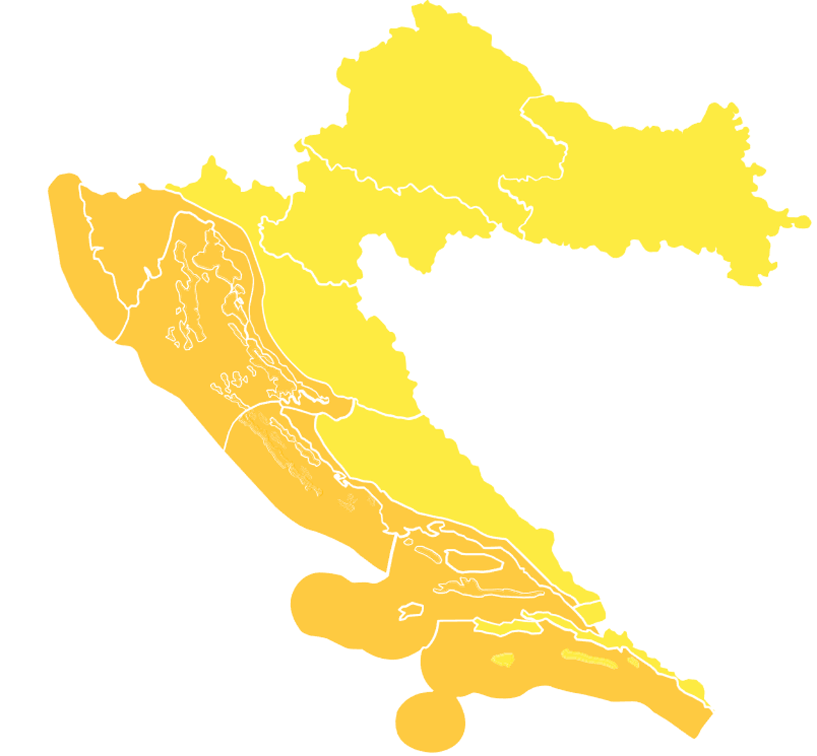 Zbog vjetra i kiše bit će upaljen žuti Meteoalarm za cijelu unutrašnjost, dok će na Jadranu na snazi biti narančasto upozorenje