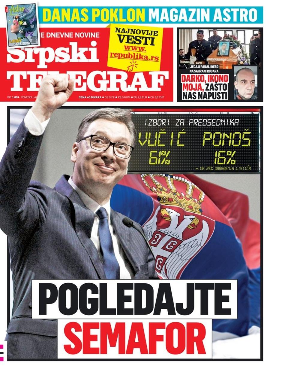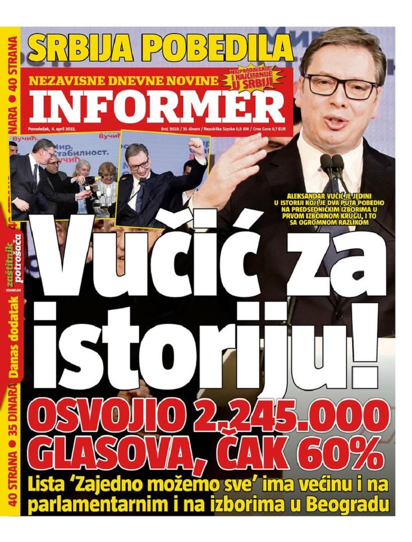 A evo kako su mediji u Srbiji izvijestili o rezultatima izbora, ovo su naslovnice vodećih tamošnjih novina...