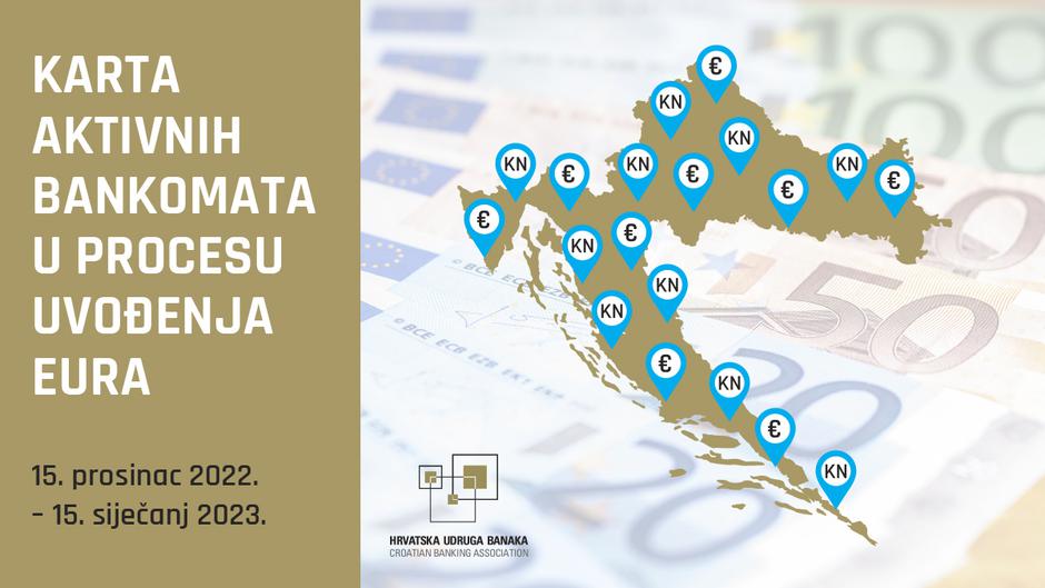 Lokacije aktivnih bankomata koji su operativni za isplatu gotovine do 15. siječnja 2023. dostupne su na interaktivnoj karti koju je objavila Hrvatska udruga banaka te ju ažurira na dnevnoj bazi.