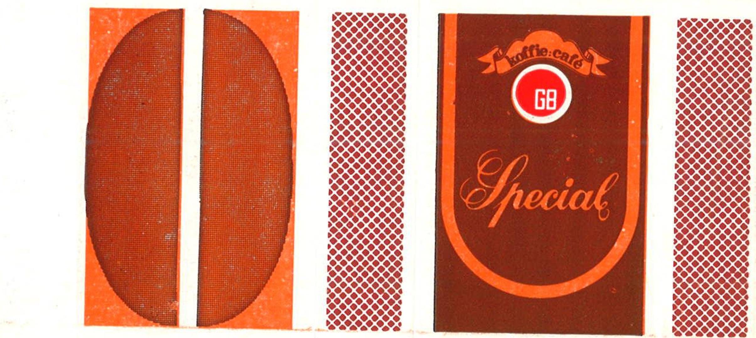 Tržišno orijentirani Belgijanci odlučili su spojiti ugodno s korisnim i pritom dobro zaraditi na artiklu koji su koristili gotovo svi: na jednu stranu poleđine kutije šibica stavili su prikaz zrna kave, a na drugu oznaku „kava“ na francuskom i nizozemskom jeziku („cafe“ i „koffie“), zaštitni znak trgovačkog lanca („GB“), oznaku pojedine vrste kave („Moka“, „Special“ i „Dessert“) i grafički znak koji simbolizira šibicu, premda poluzavinutu. Svaka od tri pojedine vrste kave prezentirana je na podlozi u određenoj boji, tj. narančastoj, zelenoj i smeđoj. Djeluje efektno: uz prvu jutarnju kavu uzimate jednu šibicu iz kutije koja vas poziva da popijete još jednu te pripaljujete prvu cigaretu tog dana.
