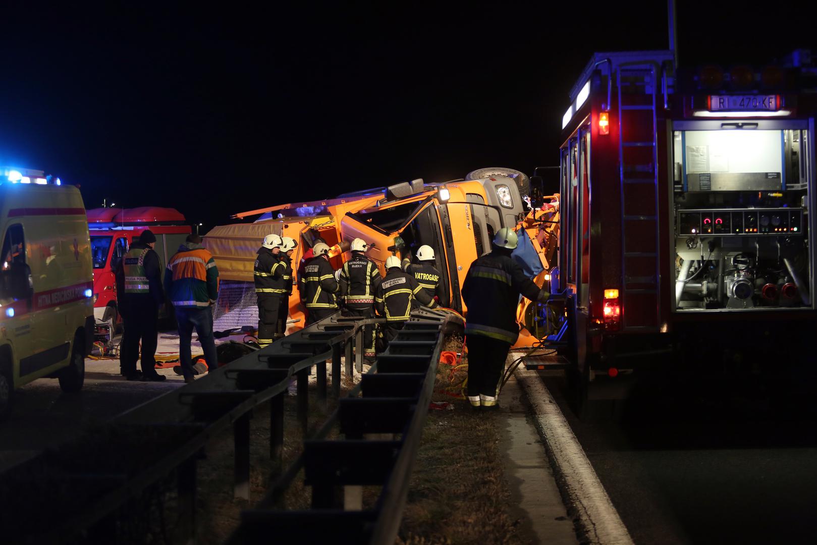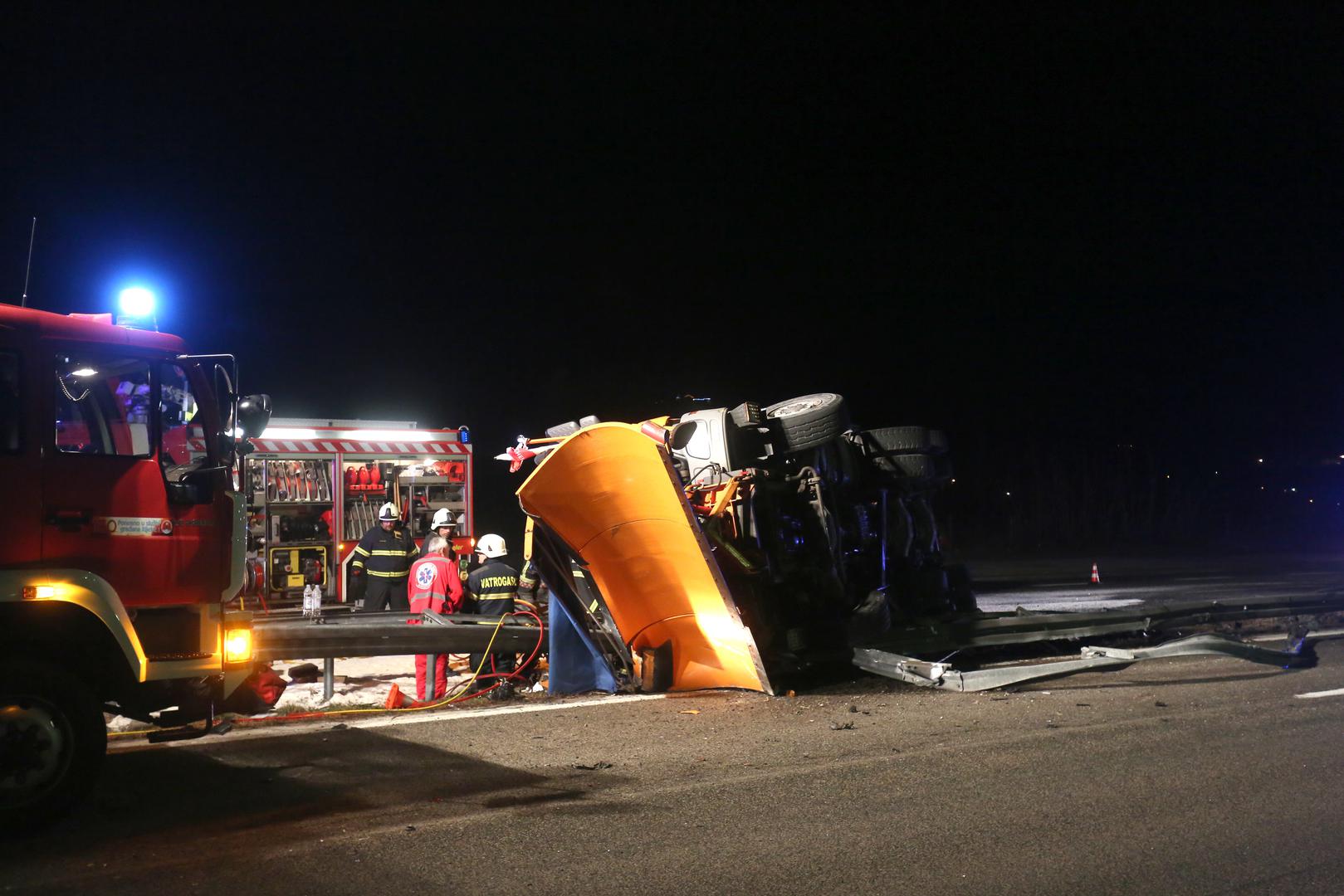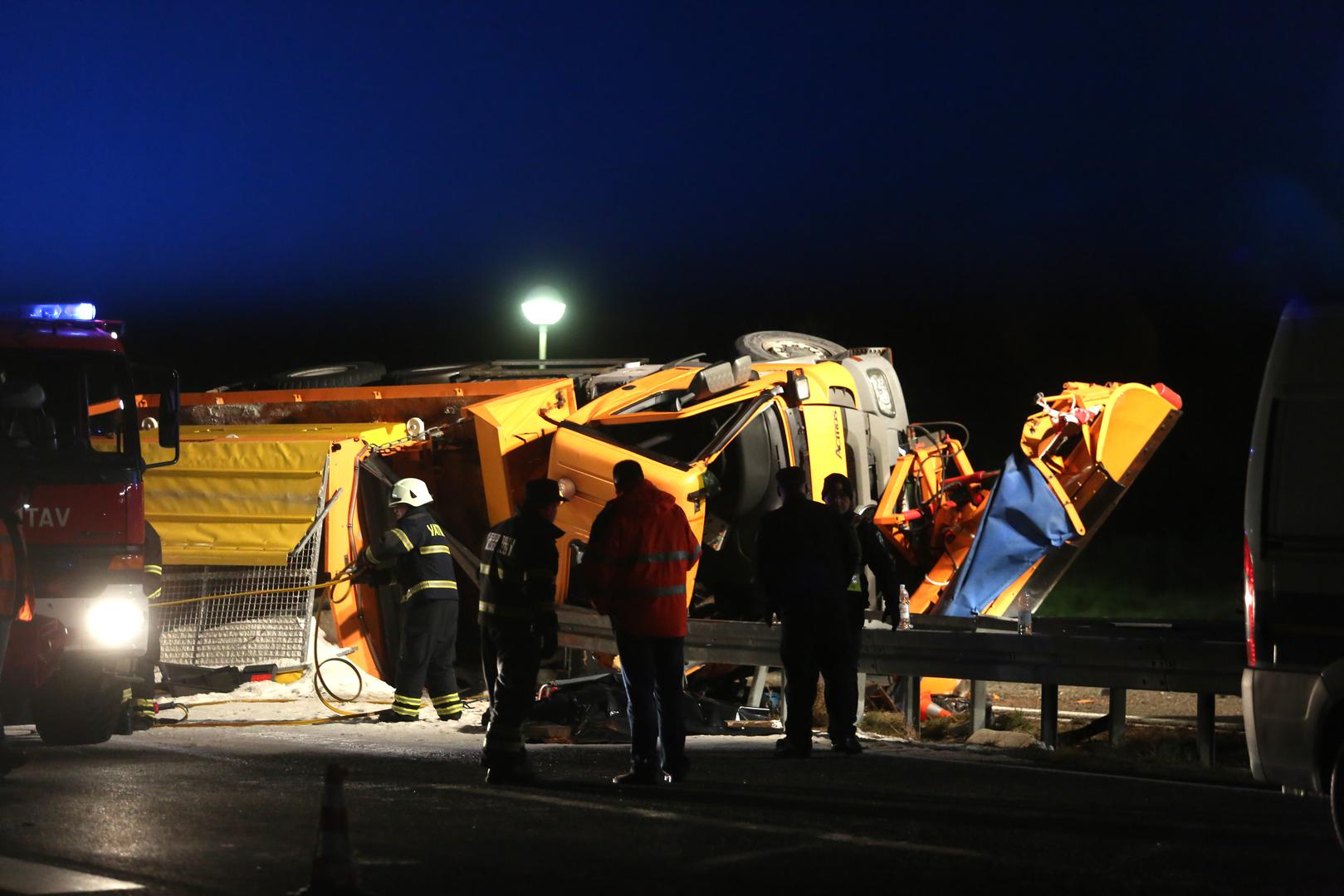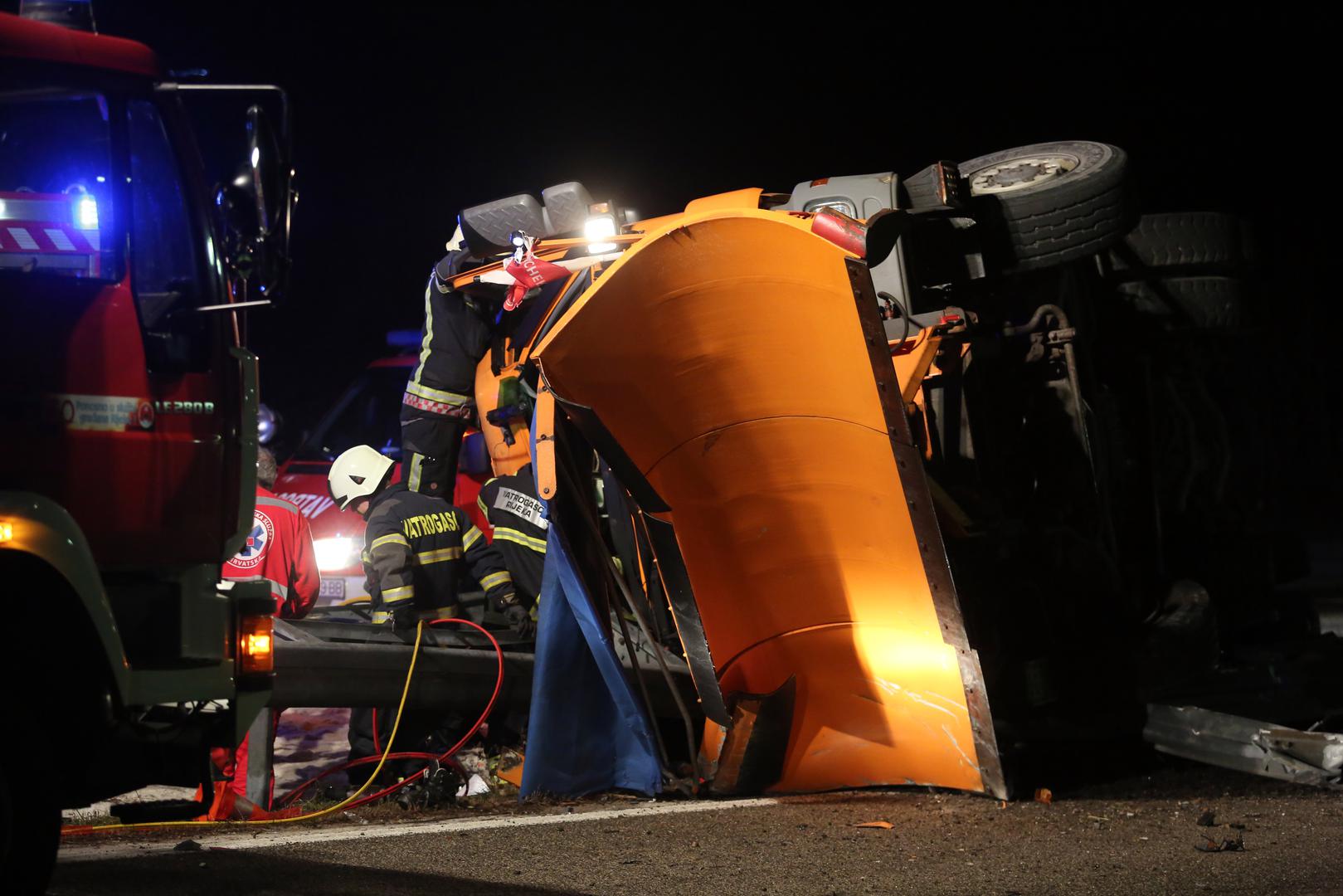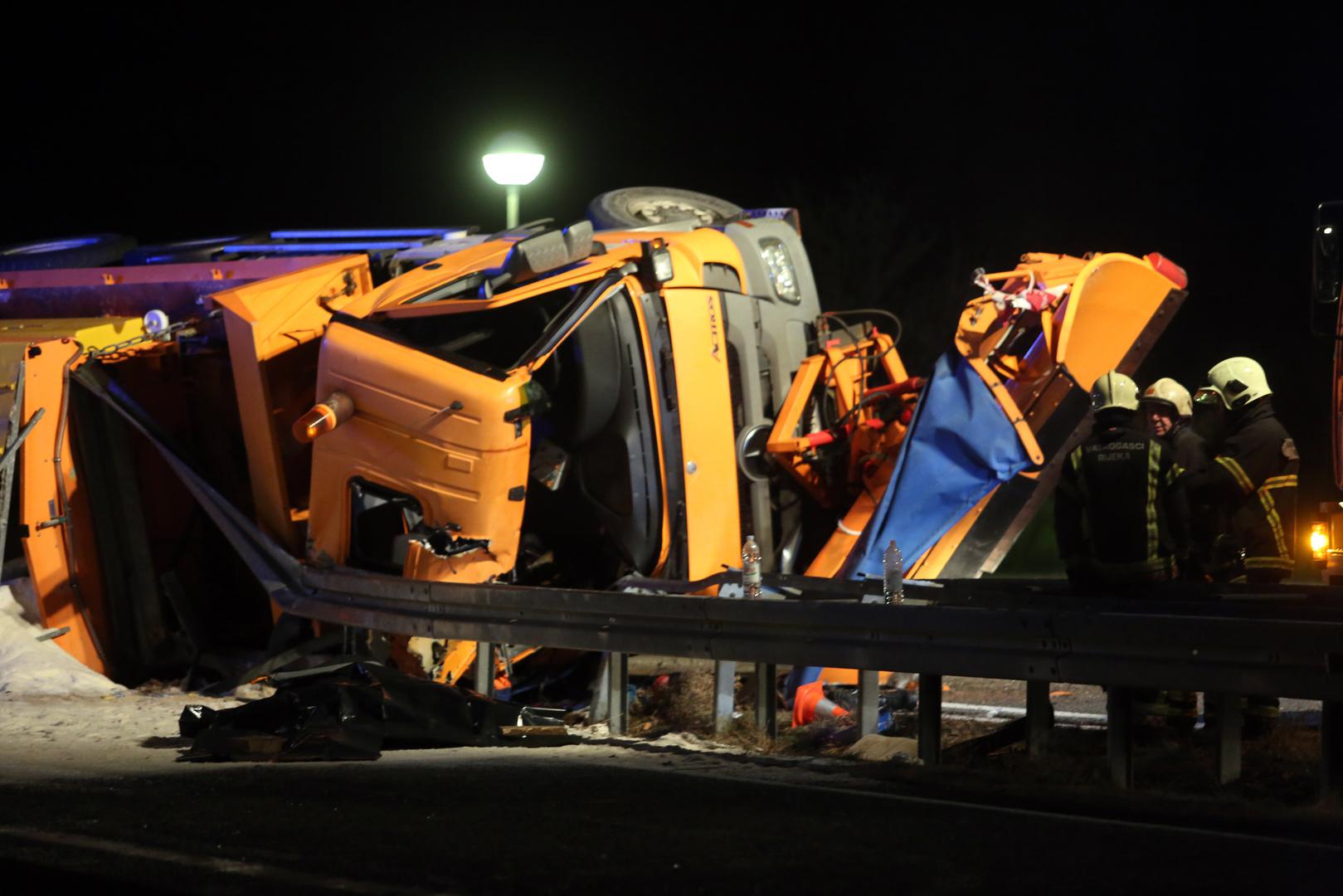 Jedna je osoba preminula, a druga teško ozlijeđena u prometnoj nesreći prevrtanja kamiona ralice Hrvatskih cesta.