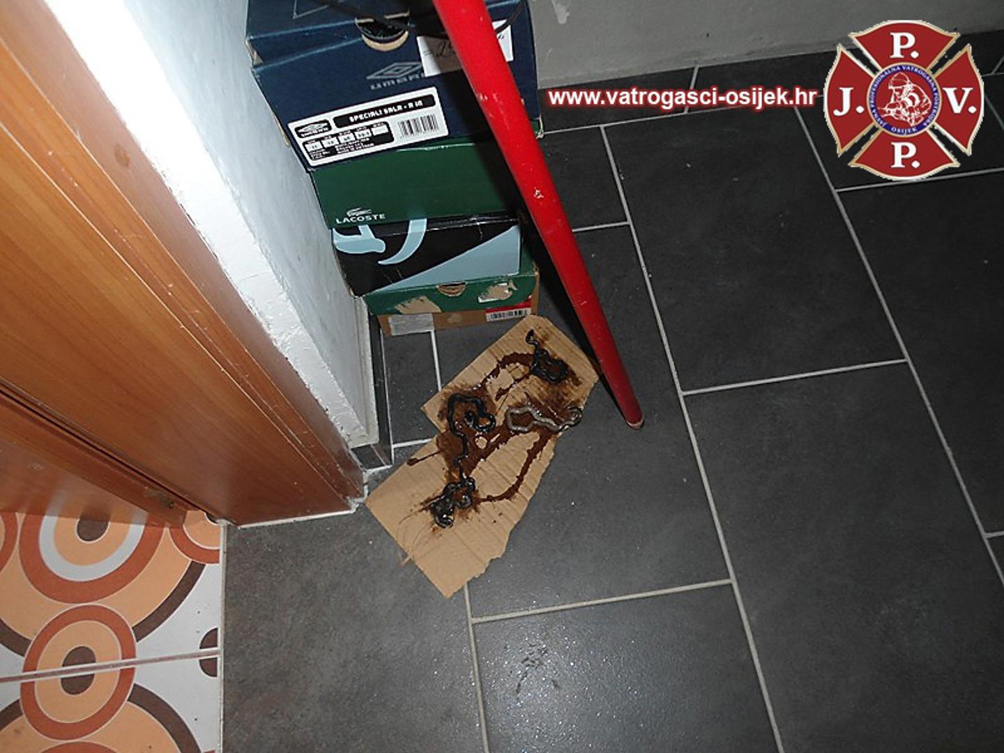 Šef osječkih vatrogasaca ispričao je da su pokupili 60 zmija, a kada su pustili vodu kroz cijev iz septičke je izašlo još većih bjelouški. - Plitka je i obložena šupljom ciglom te je idealna za stanište bjelouškama. Voda u jami je bila jako visoka i malene zmije su se kroz vodu i kanalizacijske te vodovodne cijevi probile do kupaonice - izjavio je šef vatrogasaca Boris Banjan.