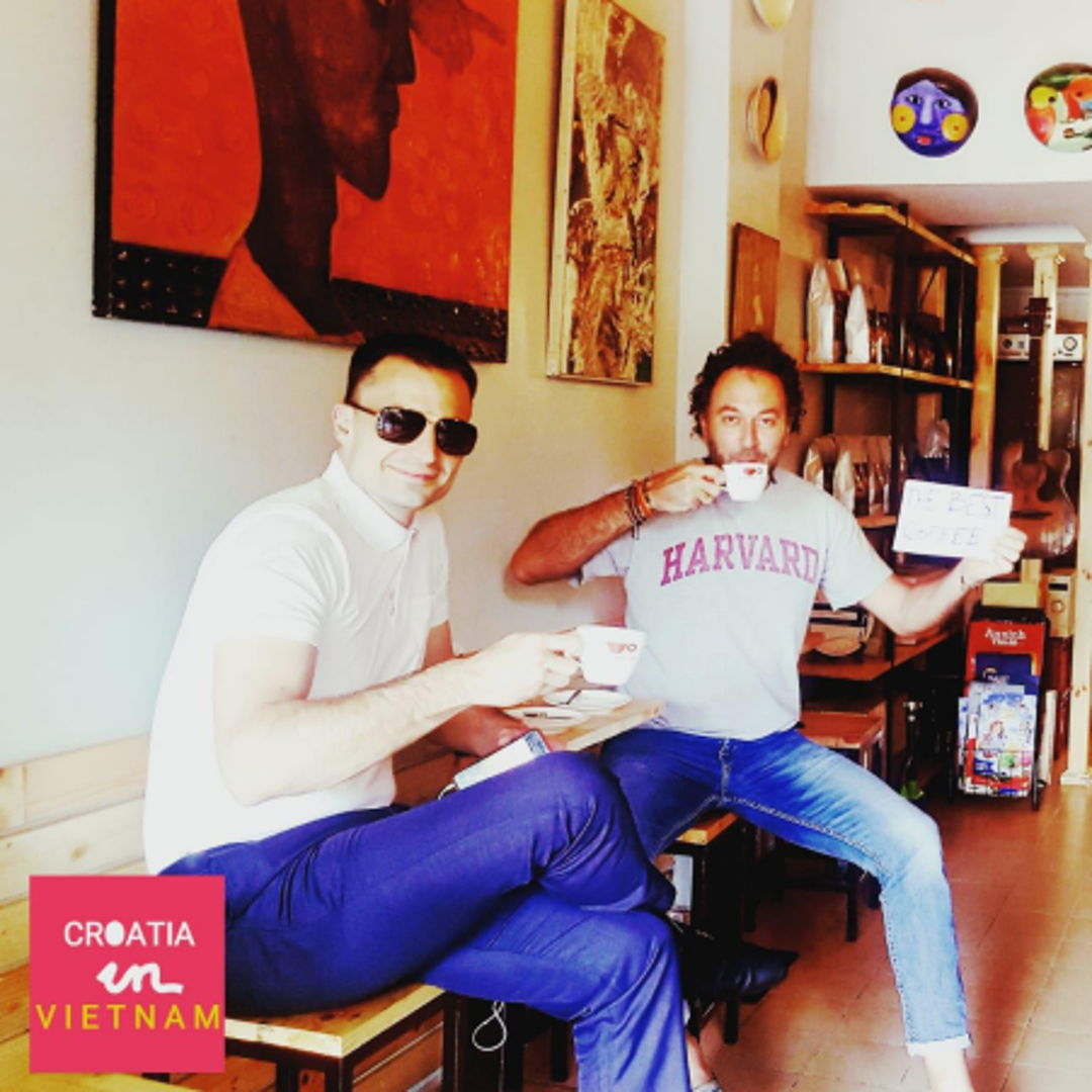 Na fotografiji: Bivši hrvatski veleposlanik u Vijetnamu Krešo Glavač (desno) i predsjednik vijetnamske CEEC (Central and Eastern European Chamber of Commerce) Marko Morić (lijevo) na kavi u jednom hanojskom kafiću