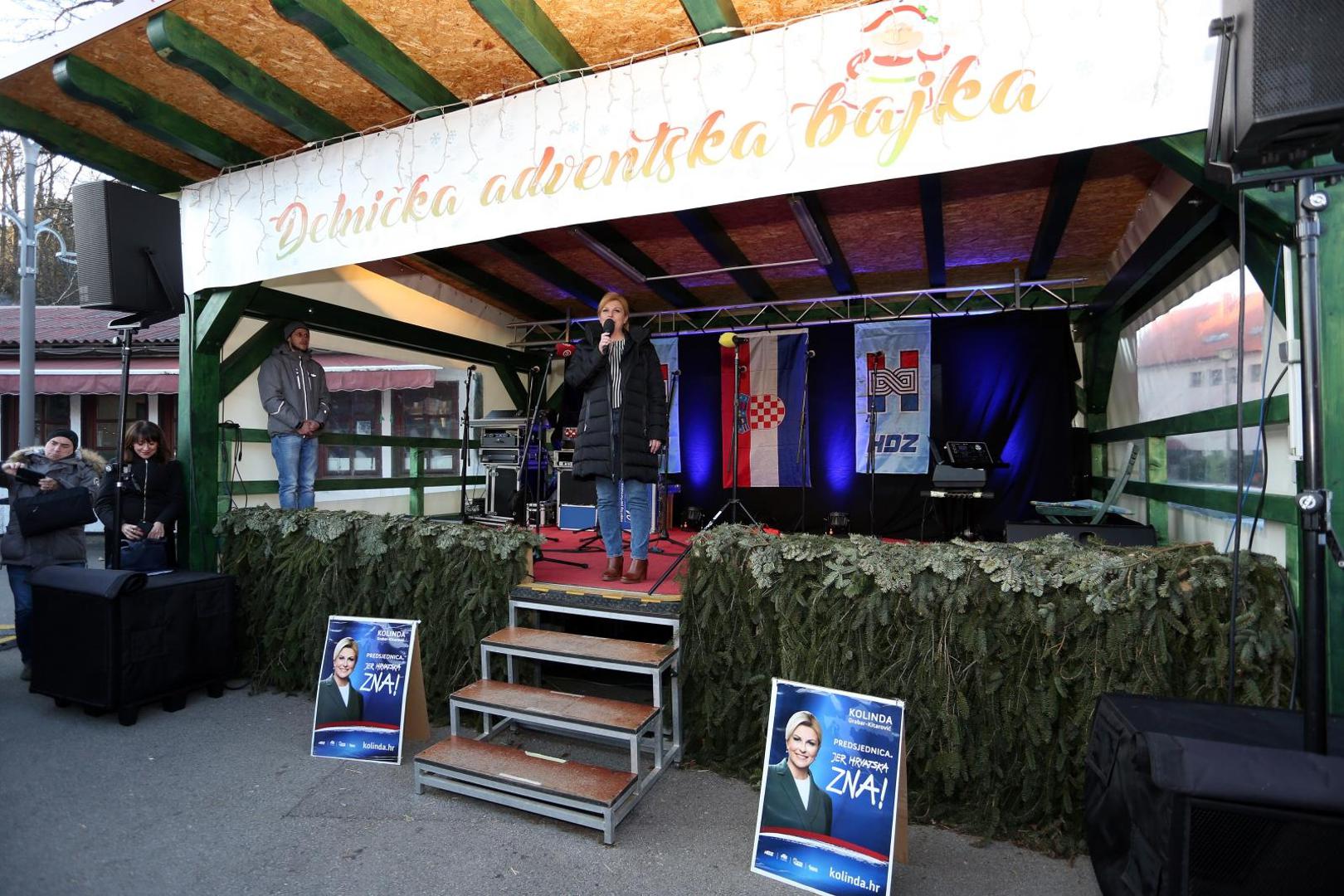U centru Delnica, s Kolindom se nakon njezina predizbornog skupa za stotinjak ljudi rukovala Gospava Štimac (63).