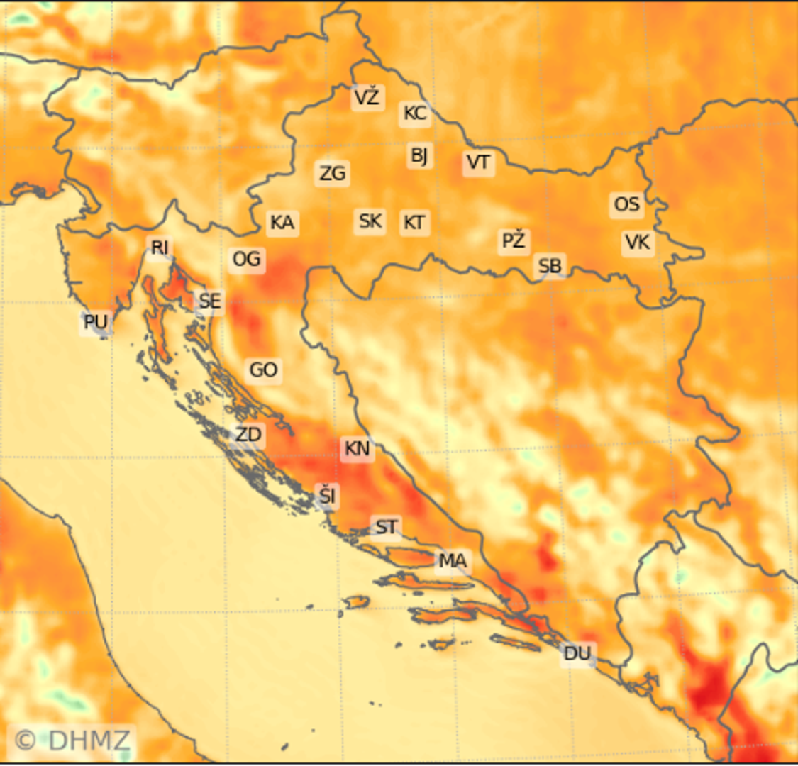 Nakon nekoliko svježijih dana, Hrvatsku već sutra zahvaća snažan toplinski val koji će kulminirati početkom idućeg tjedna. Državni hidrometeorološki zavod (DHMZ) upalio je za sutra meteoalarm za veći dio zemlje, a u nedjelju i ponedjeljak na snazi će biti najviše upozorenje. Za riječku regiju već je u nedjelju upaljen crveni alarm zbog očekivane iznimno visoke temperature, koja će prelaziti 36 stupnjeva.