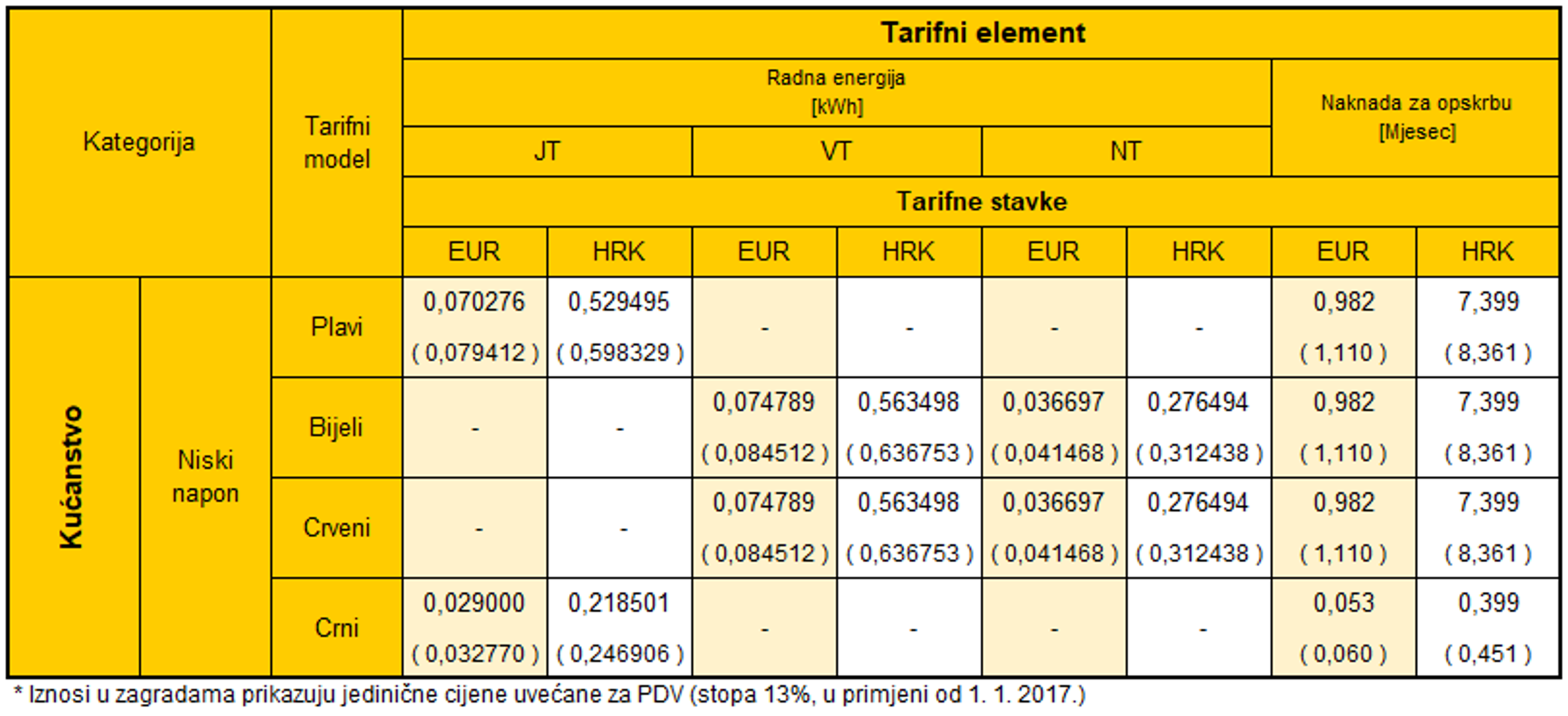 - Uz tarifne stavke za opskrbu, prijenos i distribuciju, svi kupci plaćaju i posebnu Naknadu za obnovljive izvore i visokoučinkovitu kogeneraciju u iznosu od 0,013936 €/kWh odnosno 0,105 kn/kWh (u iznos nije uključen PDV), sukladno Odluci o naknadi za obnovljive izvore energije i visokoučinkovitu kogeneraciju - objašnjava HEP.