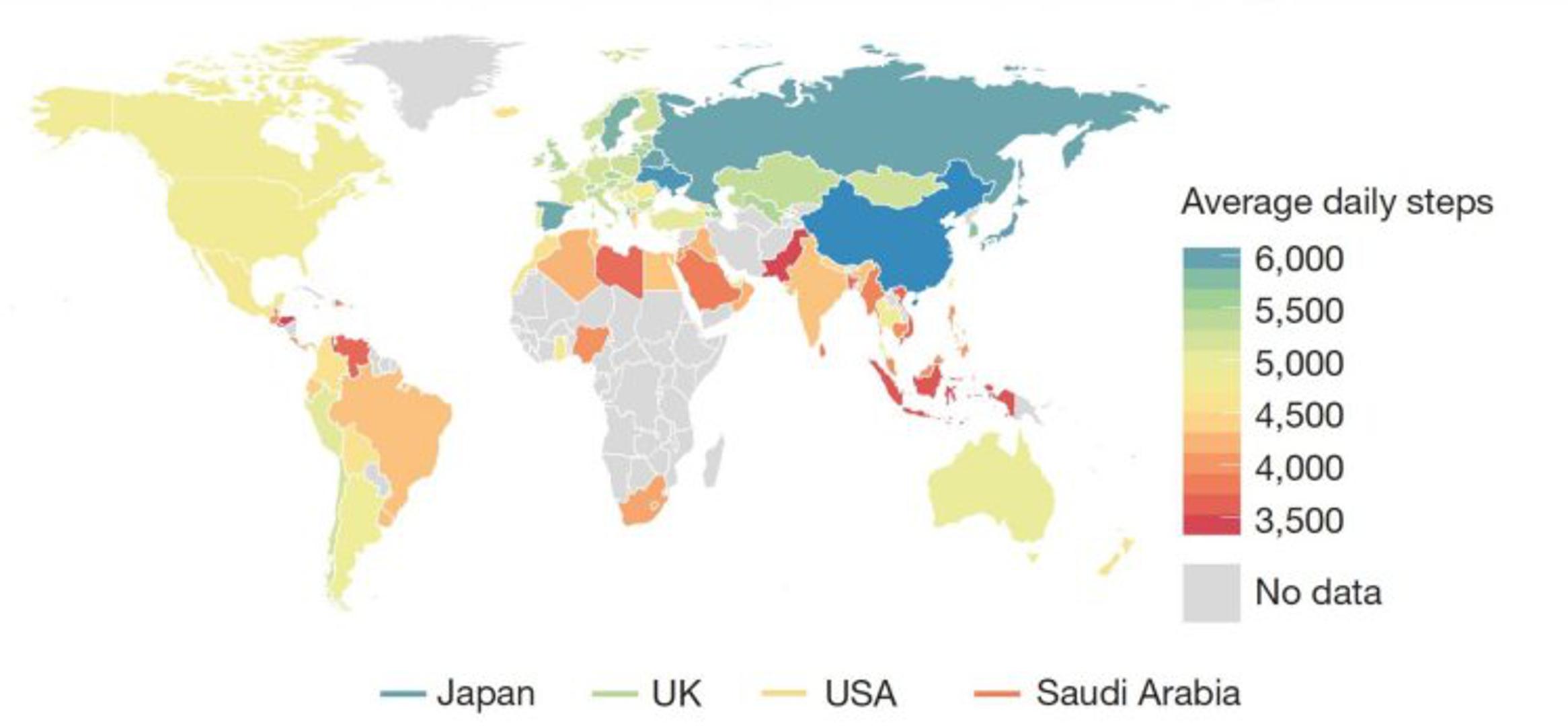 Zanimljivo, osim Kine, u marljivosti se iskazala i Rusija, dok Amerikanci, osobito oni iz Južne Amerike imaju tek 4.000-4.500 koraka dnevno.
