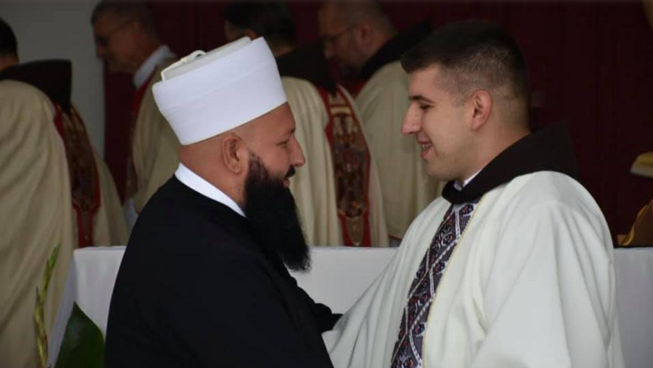"Činim ovo kao primjer mladim generacijama koji moraju zapamtiti da zajedno i jedni s drugima moramo, zarad onih koji dolaze poslije… Za poklon sam odabrao karikaturu koju je za ovu priliku uradio Amar Ajdinović, a na njoj je fra Antonio sa Ahdnamom sultana Mehmeda Fatiha", objavio je efendija na svojoj Facebook stranici.