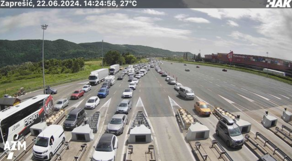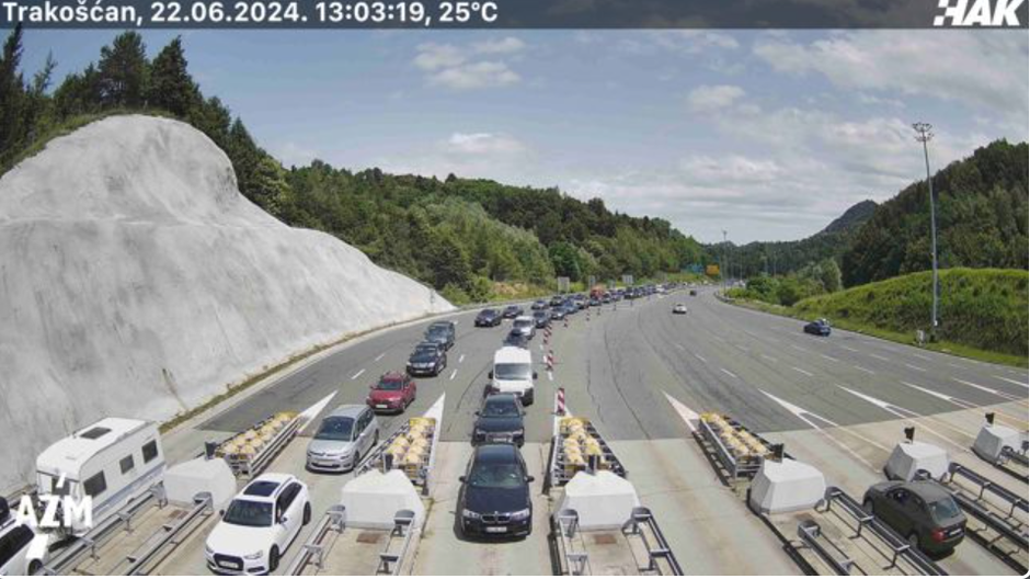 Na autocesti A2 Zagreb-Macelj pred naplatom Trakošćan u smjeru Zagreba kolona je duga oko 1,5 kilometar i nastavlja se u Sloveniju. "Idemo iz Slovenije na more. Katastrofa. U vrhu sezone trebati početi raditi putove, ne daj Bože vinjete, to je valjda planom napravljeno," kazao je turist iz Slovenije za HRT.