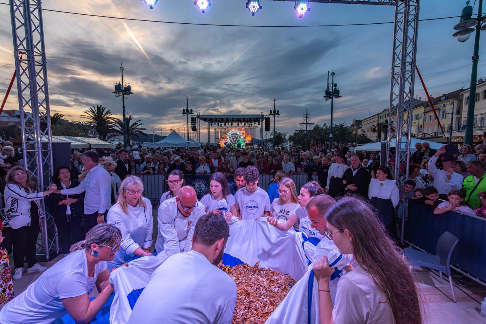 Deseci slastičara i volontera utkali su svoje znanje, ljubav i strpljenje u taj spektakl od karamele i badema. Kada je rekord službeno potvrđen, torta je – po drevnoj pomorskoj tradiciji – razbijena sabljom, a trenutak zajedništva i ponosa ispunio je trg kao melodija ljetnoga maestrala.
