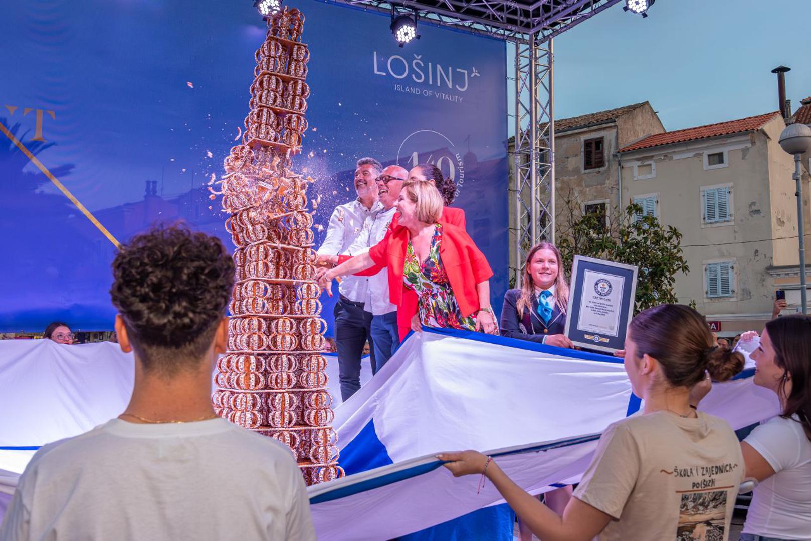 Vrhunac suvremene priče o lošinjskom krokantu zabilježen je 3. svibnja 2025. – iste godine kada je otočni Puhački orkestar ‘Josip Kašman’ proslavio 150. obljetnicu postojanja, a zajednica svojih 140 godina turizma na otoku. Tog je dana Lošinj zasjao na svjetskoj pozornici, ušavši u Guinnessovu knjigu rekorda. Na Trgu u Malom Lošinju, pred očima mještana, turista, fotografa i novinara podignuta je monumentalna piramida od krokanta visoka 2,73 metra i teška 57,5 kilograma.