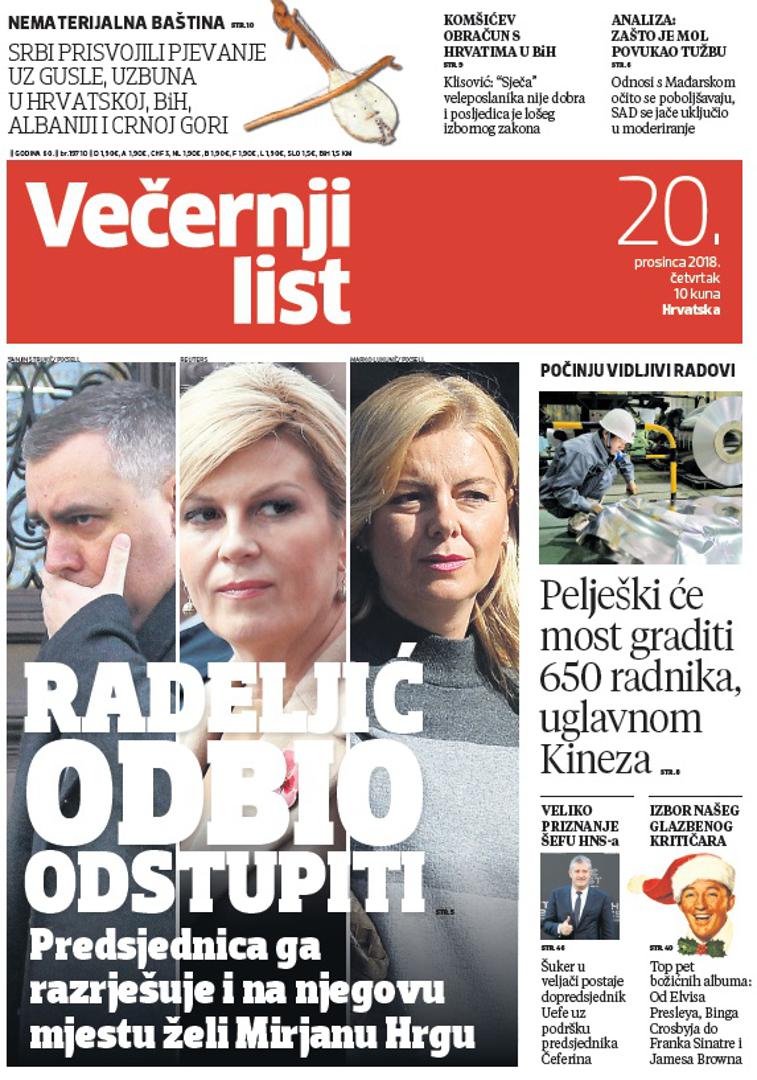 >>Predsjednica razrješuje Radeljića i na njegovu mjestu želi Mirjanu Hrgu