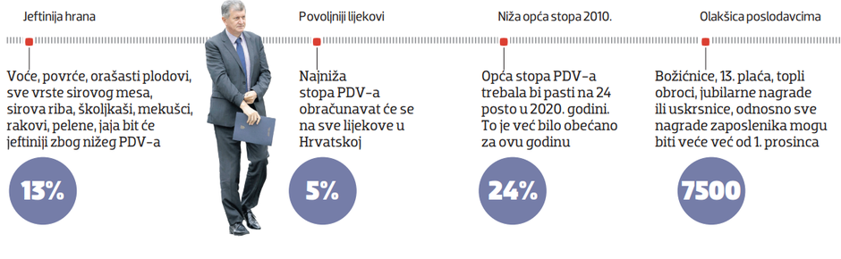 Da će se u sklopu porezne reforme smanjiti PDV na dio hrane i pelene, znalo se od srpnja kada je predstavljen prijedlog rasterećenja teških 2,8 milijardi kuna koja nas očekuju u idućoj godini, ali ministar financija Zdravko Marić uspio je iznenaditi smanjivši PDV na sve lijekove na svega 5 posto. Uz to poslušao je i apele poslodavaca koji su tražili veći prostor za nagrade za svoje zaposlenike pa je najavio da se od 1. prosinca povećava neoporezivi dio za nagrade poput božićnica ili bonusa sa sadašnjih 2500 kuna na 7500 kuna. Večernji list na svojim konferencijama “Hrvatska kakvu trebamo” progovarao je o nužnosti ovih poteza koji su naposljetku i usvojeni.