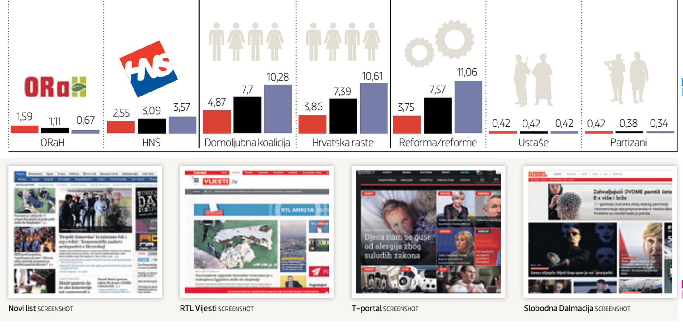 A upravo jedno takvo istraživanje radi se i u Hrvatskoj. Interdisciplinarni tim entuzijasta sastavljen od Jana Šnajdera, docenta Laboratorija za analizu teksta i inženjerstvo znanja (TakeLab) Fakulteta elektrotehnike i računarstva, Damira Korenčića iz Zavoda za elektroniku Instituta Ruđer Bošković i docentice Marijane Grbeše s Fakulteta političkih znanosti odlučio je utvrditi koje su teme dominirale hrvatskim medijima. I to u razdoblju neposredno prije i nakon posljednjih parlamentarnih izbora.