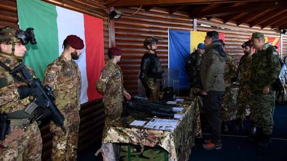Predsjednik Milanović prvo se sastao sa zapovjednikom kampa pukovnikom Andreom Bertazzom, nakon čega su mu hrvatski, talijanski, slovenski, austrijski, sjevernomakedonski i moldavski vojnici, predstavili oružje i vojnu opremu koju koriste.