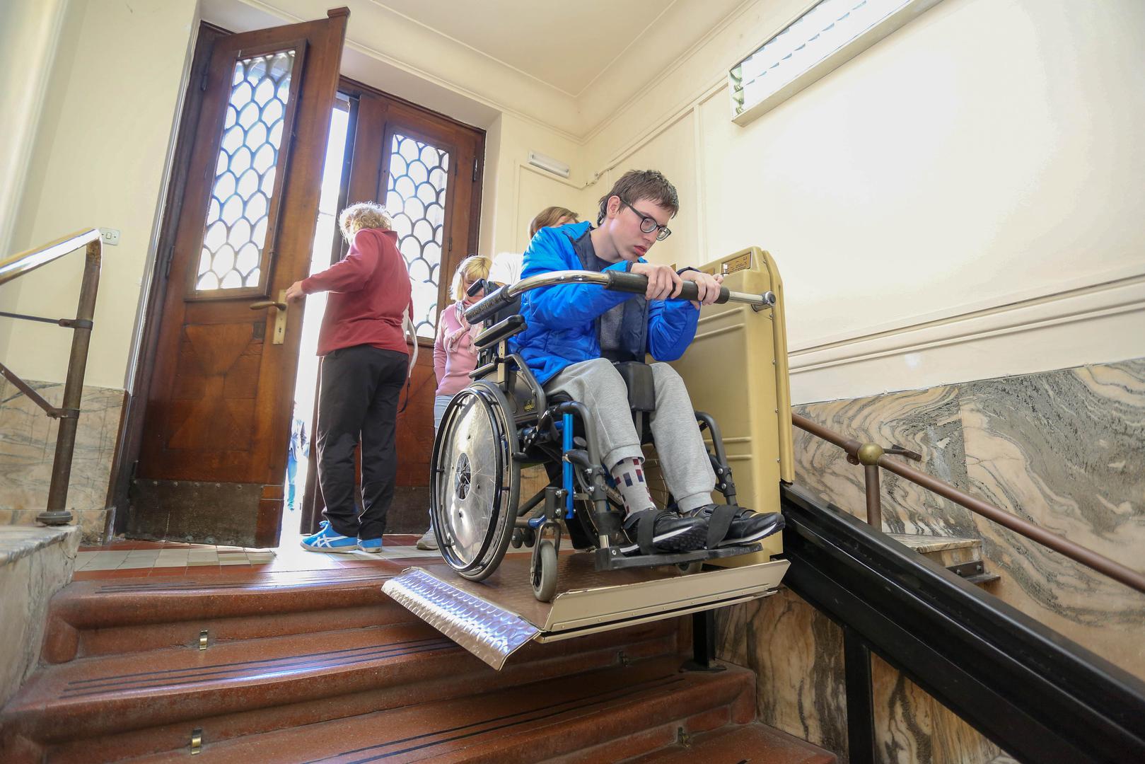 Osobe s invaliditetom inače se rampom spuštaju u podrum, odakle se dizalom penju na kat.