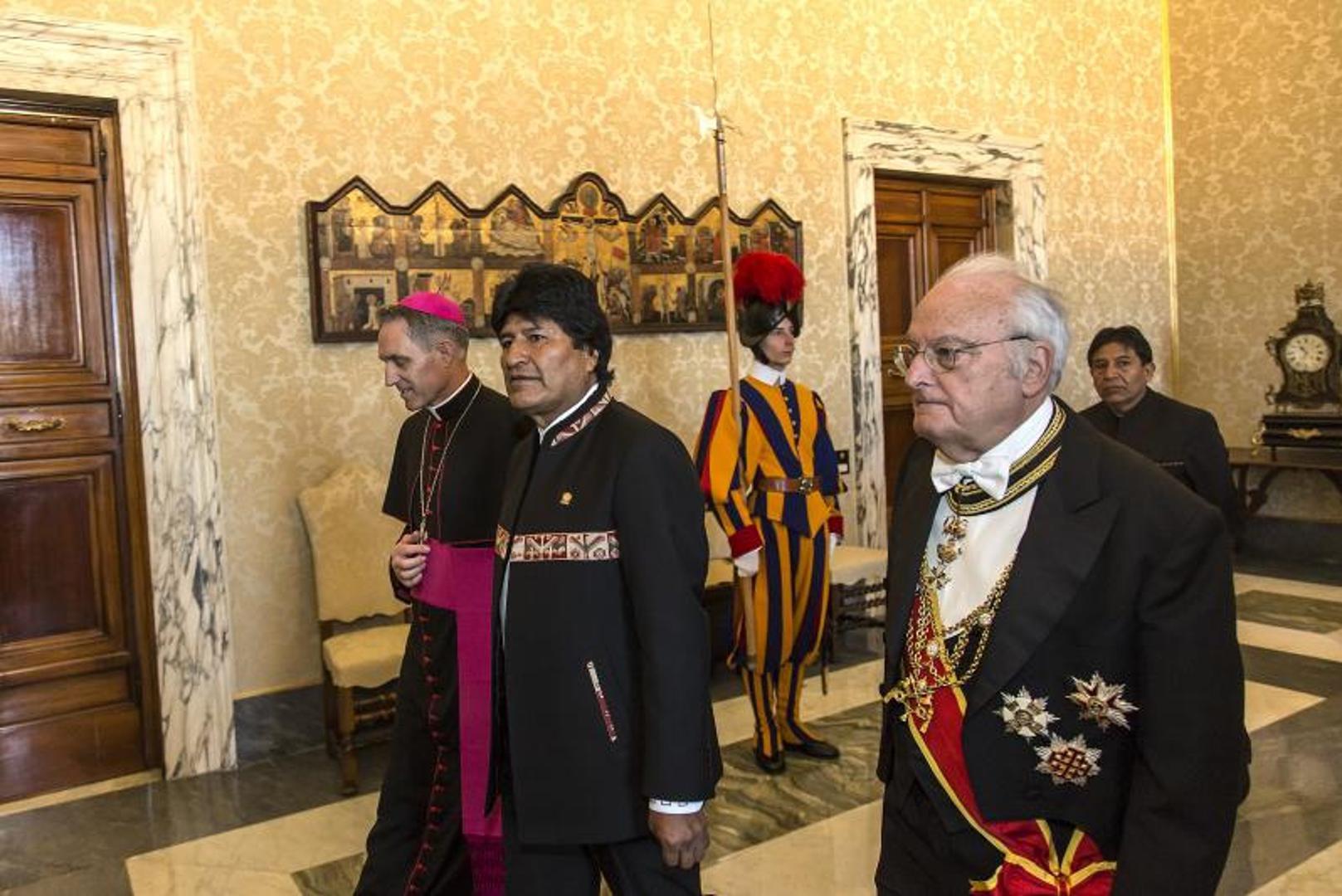 Za vrijeme polusatnog razgovora u knjižnici Apostolske palače, bolivijski predsjednik i argentinski Papa razgovarali su o "aktualnoj socijalno-ekonomskoj situaciji" u Boliviji, stoji u priopćenju Vatikana. Morales, koji se zalaže za dekriminalizaciju upotrebe kokina lišća, podsjećajući da je to dugogodišnja tradicija Indijanaca iz Andskih kordiljera, Papi je poklonio tri knjige o blagotvornom i ljekovitom djelovanju ove biljke.