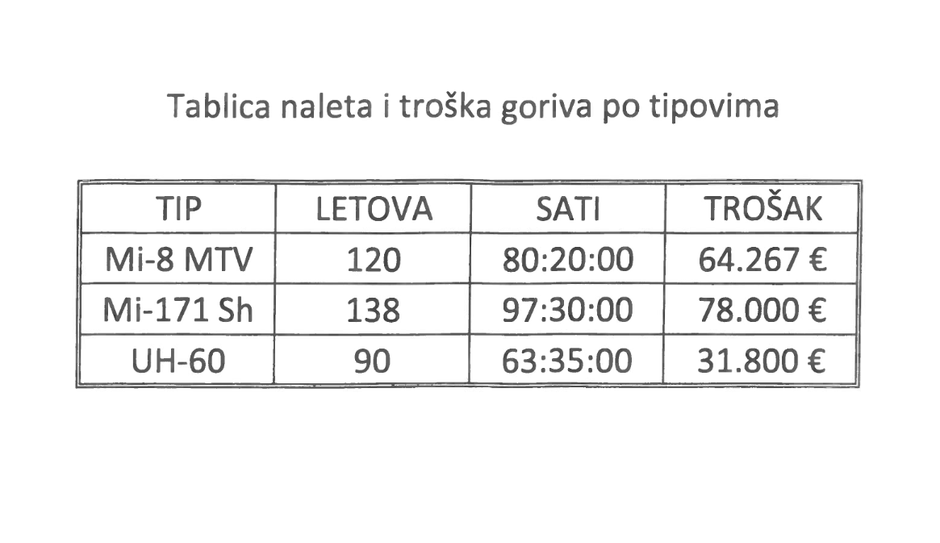 To bi, primjerice, značilo da kada predsjednik s Hvara zatraži helikopter da ga preveze do Sinja ili Dubrovnika, izdaje jednu zapovijed (zadaću) i to računa kao jedan let, dok su se ustvari dogodila dva leta, jer je helikopter prvo morao uzletjeti iz Zagreba, pa sletjeti na Hvaru, pa onda letjeti u Sinj ili Dubrovnik. I onda se vratiti u Zagreb, ako nije bilo novih narudžbi, u sklopu te jedne zadaće, što bi bio onda i treći let po jednoj zapovijedi, odnosno zahtjevu predsjednika.