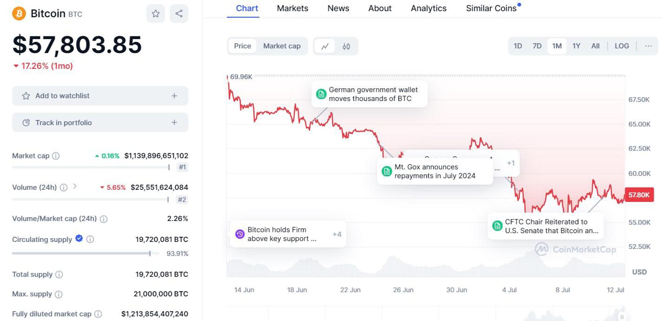 Prodaja bitcoina od strane njemačke vlade glavni je faktor koji pridonosi ovom nesigurnom ozračju. Danas su već premjestili 3.100 BTC-a (što iznosi 178 milijuna dolara) s mogućim daljnjim prodajama u budućnosti.