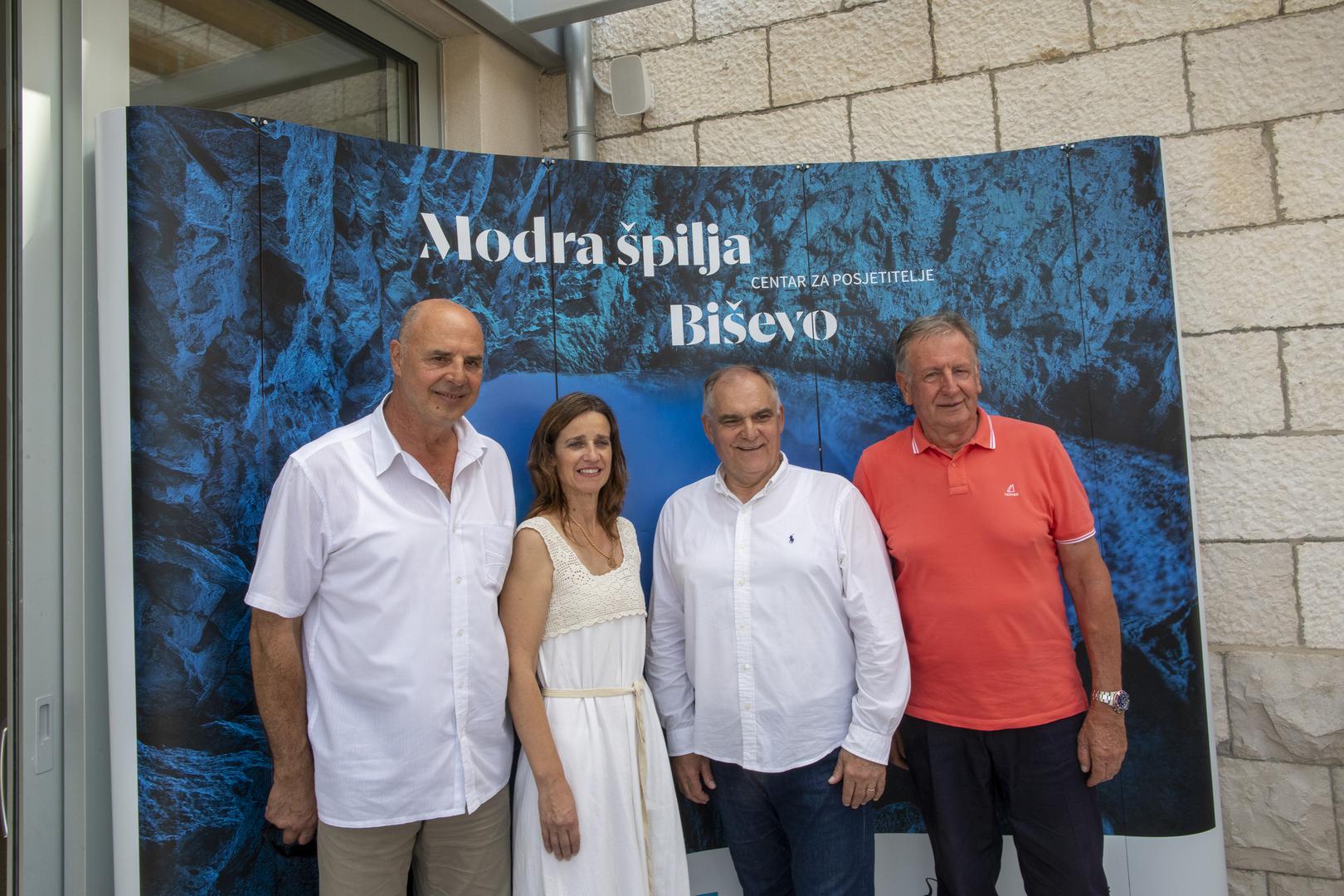Na otvaranju Centra za posjetitelje, nakon 6 godina intenzivne suradnje na projektu okupili su se svi  sudionici i partneri projekta; predstavnik Instituta Plavi svijet, Draško Holcer, ravnatelj Javne Ustanove more i krš, Domagoj Lažeta, direktor Turističke zajednice grada Komiže, Bogoljub Mitraković uz gradonačelnicu Komiže, gospođu Tonku Ivičević. Župan Splitsko-dalmatinske županije Blaženko Boban otvorio je Centar za posjetitelja Modra Špilja.
