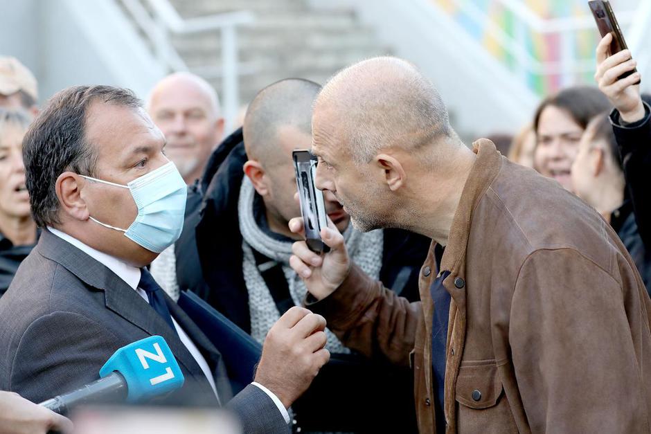 "Izdaja, izdaja!", vikali su prosvjednici ispred KBC-a Zagreb kada je prošao Vili Beroš. "Ovo su fašističke metode", "Odlazi", dovikivali su neki prosvjednici, dok drugi zvižde Berošu. Ministar se ispred KBC-a spremao dati izjavu za medije, no zbog burne reakcije prosvjednika nije mogao. Zbog toga je ušao u zgradu bolnice te se s ravnateljem KBC-a Zagreb obratio medijima.