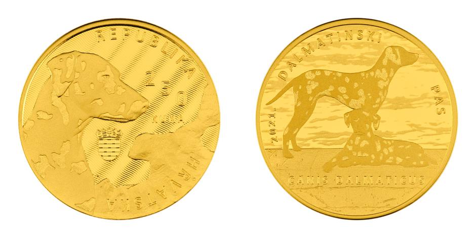 Osim zlatnika s motivima optjecajnog novca, posebno je popularan zlatnik Dalmatinski pas. Kako bi obilježila ovu međunarodno priznatu pasminu, Hrvatska narodna banka je na inicijativu Hrvatske kovnice novca izdala prigodne kovanice s motivom dalmatinskog psa. Mladi kipar Nikola Vudrag, sada već svjetski poznati umjetnik, u idejno je rješenje pretočio prepoznatljive značajke ove pasmine ali i dijelove zemljopisne karte Republike Hrvatske. Mrlje karakteristične za dalmatinskog psa izvedene su u obliku raznih hrvatskih otoka, a reljefno je prikazan i dio kopna, s morskim valovima u pozadini.