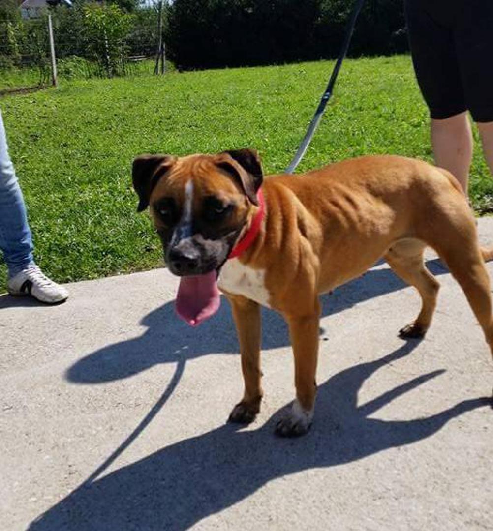 Tigy, br. 171/16, ima samo 11 mjeseci, lijepo hoda na lajni, slaže se s drugim psima. Cijepljen i čipiran.