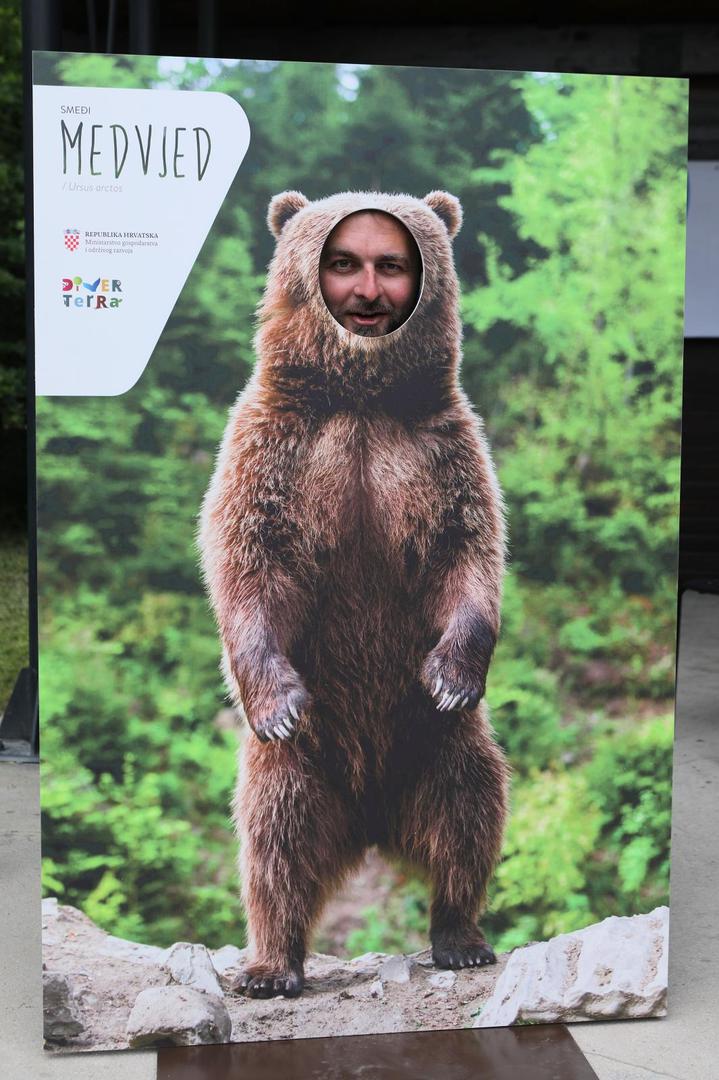 Ministar Ćorić fotografirao se u plakatu koji su inače popularni među građanima, gdje svoju glavu staviš u rupu gdje je zapravo lice nekog lika, životinje.... Ministar je stavio lice na glavu medvjeda.