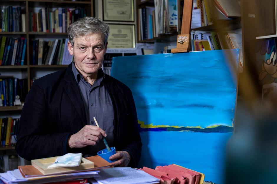 Moja radna soba na fakultetu ujedno je i moj atelijer, posebno sada u uvjetima online nastave. Nema rizika da u online uvjetima nastave studenti rukavima pobrišu boju na platnu... Još uvijek dolazim najranije. Sa svojim prijateljima, vaterpolskim veteranima Jakašom, Prezzijem, Bradarićem ... Još uvijek najranije na bazenima u Poljudu isplivam svoj kilometar. A na “Gusara” se još uvijek s puno napora borim za ulazak u balotaški dream team (Duško, Mladen, Ivan, Tiho, Tonči, Edi, Car, Stipe, Neno ...). A što se tiče popularne glazbe i njezinih najvećih uspješnica ,ona je za mene uvijek bila “medium is the message”. Na kraju krajeva, zar Bob Dylan nije dobio Nobela?