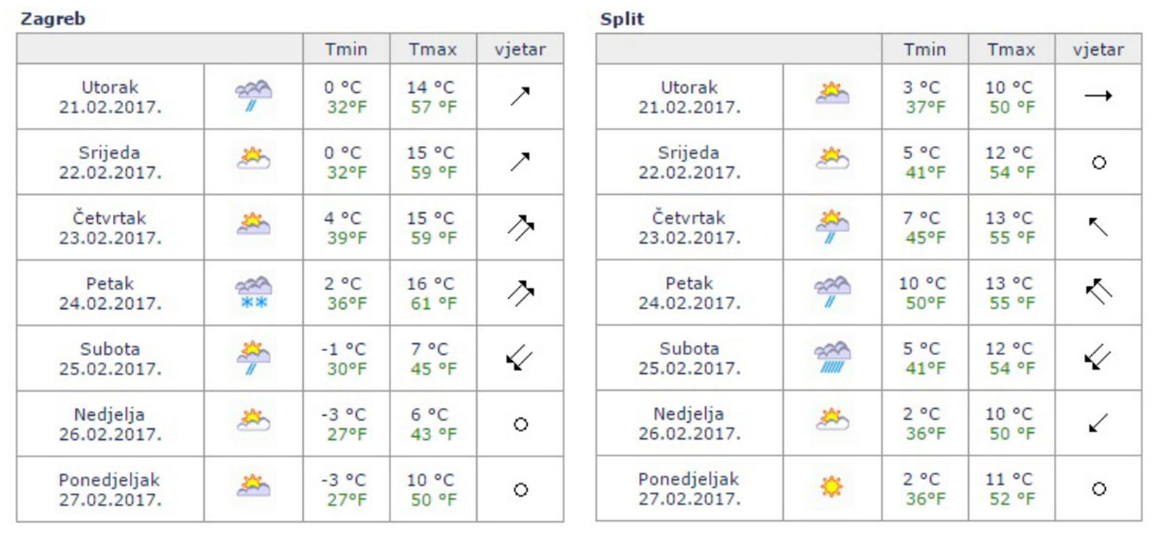 Donosimo sedmodnevnu prognozu vremena s internetskih stranica Državnog hidrometeorološkog zavoda: