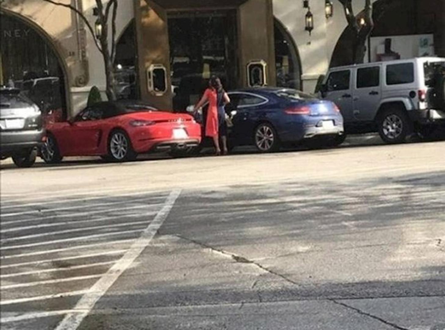 Ova je žena odjenula haljinu identičnu bojama automobila između kojih se našla.