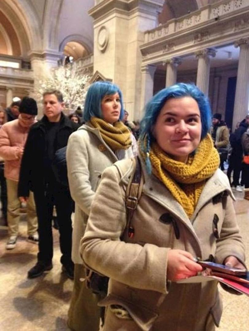 Dvije nepoznate žene na istom mjestu s istom, ali vrlo neuobičajenom bojom kose.