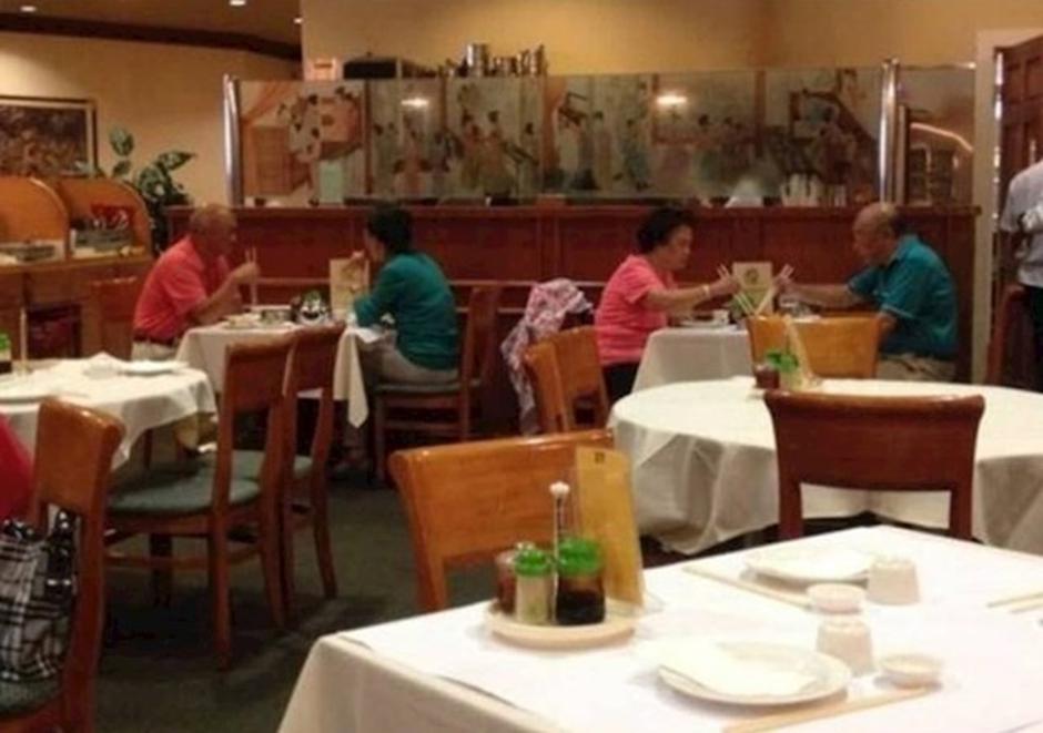 Dva para u istom restoranu koja se međusobno ne poznaju izabrala su iste odjevne kombinacije.